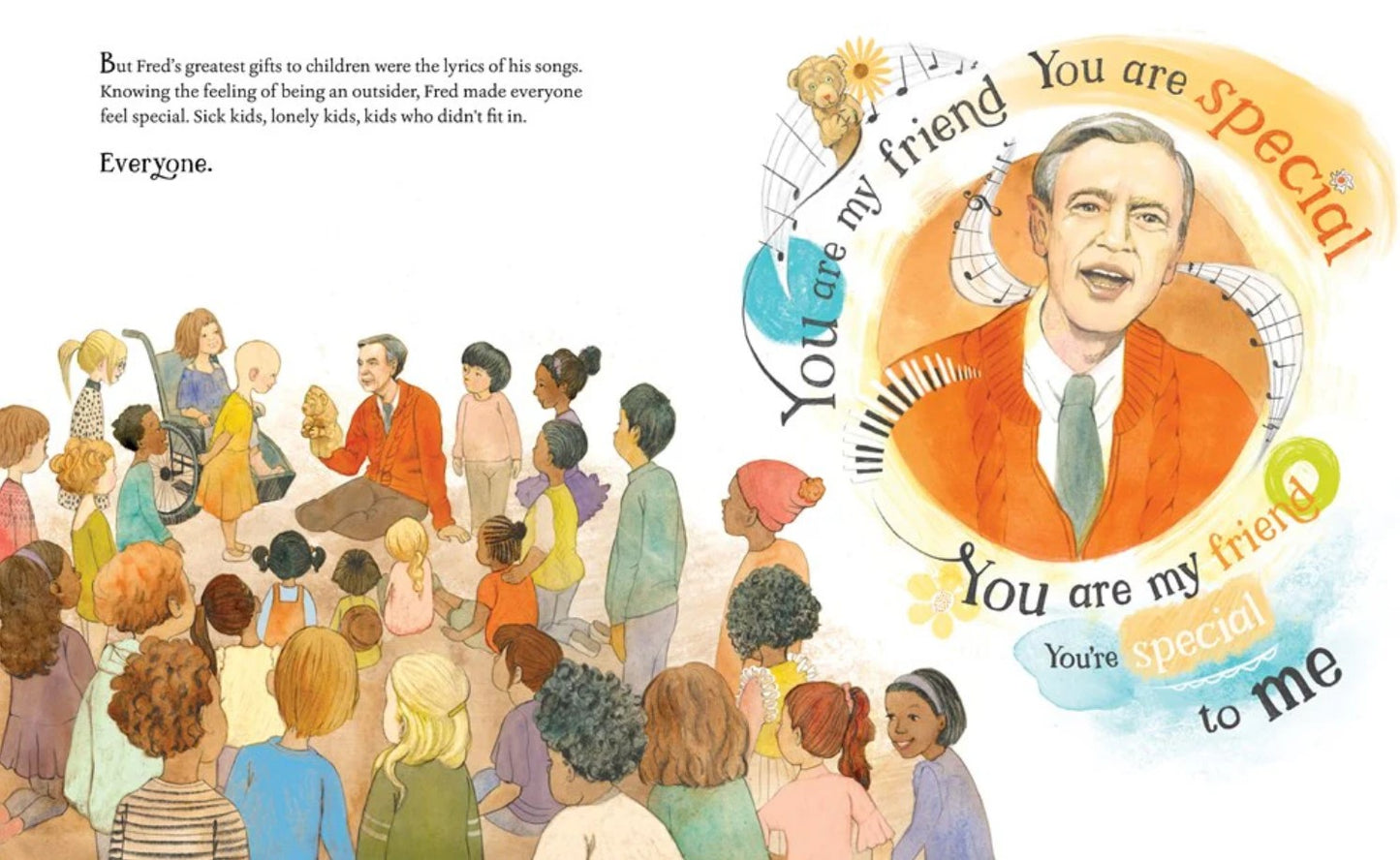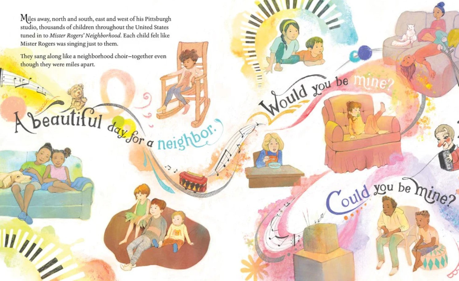 This sensitive, life-affirming biography not only portrays the life of this beloved TV personality, but focuses on Fred's most memorable songs and musical TV moments, and captures the enduring magic of his music in brilliantly colorful abstract illustration. Readers will not only learn about what music meant to Fred Rogers, but find the encouragement and inspiration to brighten their own lives with song.