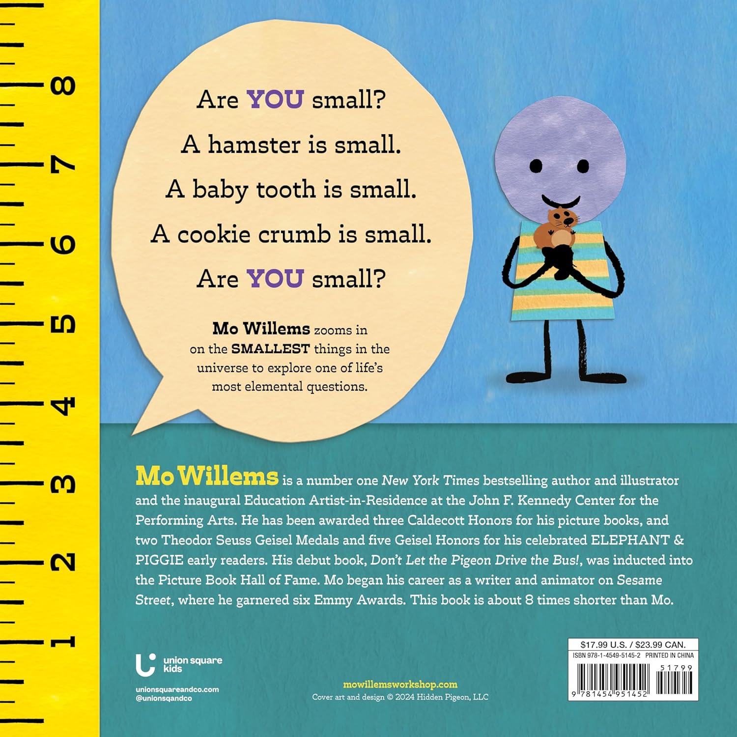 Mo Willems, #1 New York Times bestselling, award-winning author-illustrator, zooms in on the smallest things in the universe to explore one of life's most elemental questions in this nonfiction picture book about the relationship between size and scale.