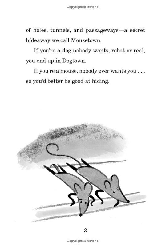 Mouse lives in Dogtown, a shelter for real dogs and robot dogs, where the kibble is plentiful, and the rafters hide a secret community of mice. His unlikely best friend is Buster, a big-hearted real dog who attracts trouble like a burr to fur.
