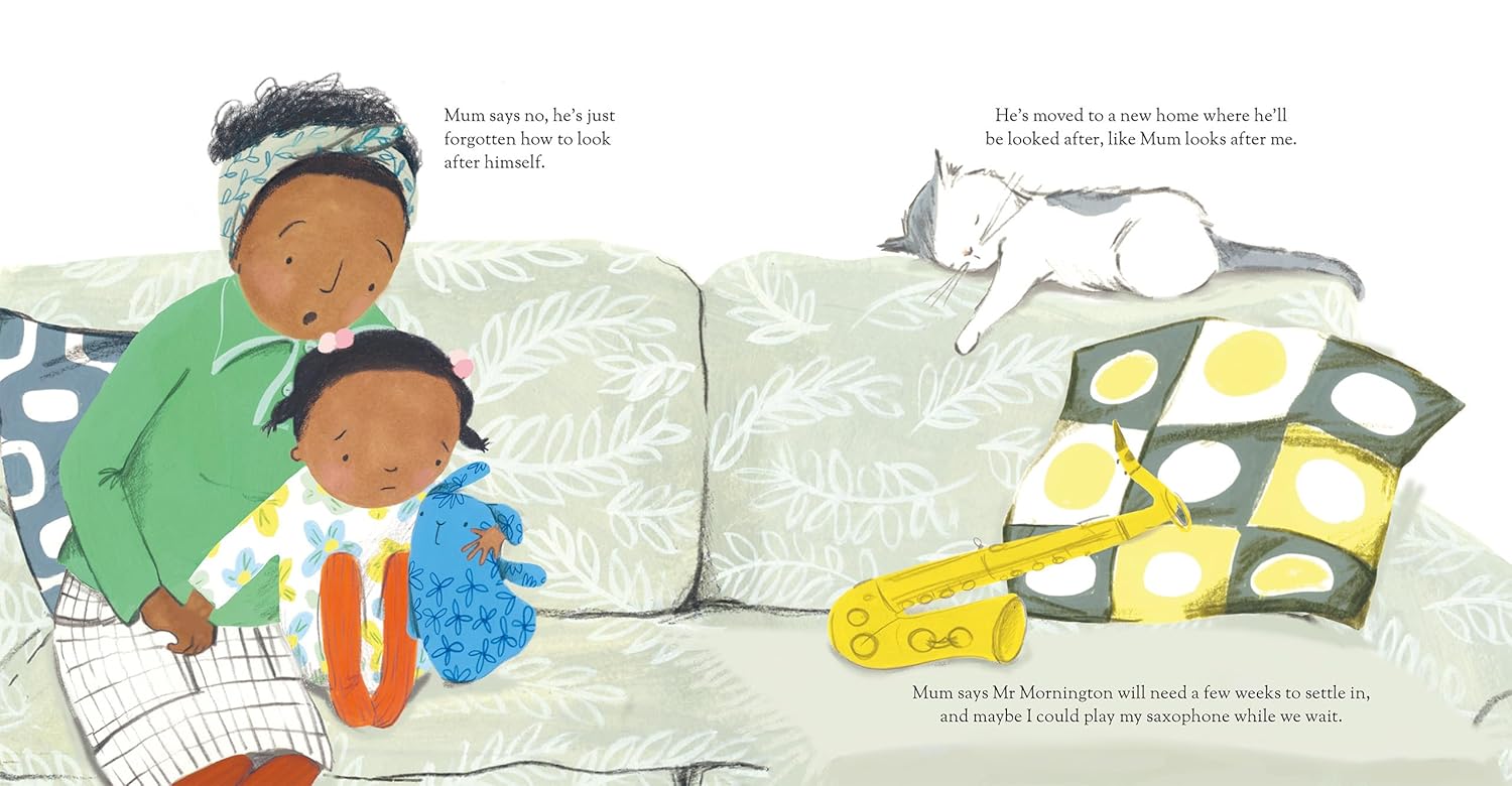 "A little girl lives next door to Mr. Mornington, who has played saxophone all over the world. These days, he's a bit tired of all that travelling, so now he plays it just for her. Together, they have a favourite song: one that conjures up memories of all their favorite things. But when Mr Mornington moves into a nursing home, his young friend wonders if he'll be able to remember her - or any of his favorite things at all... perhaps there's something she can do to help?