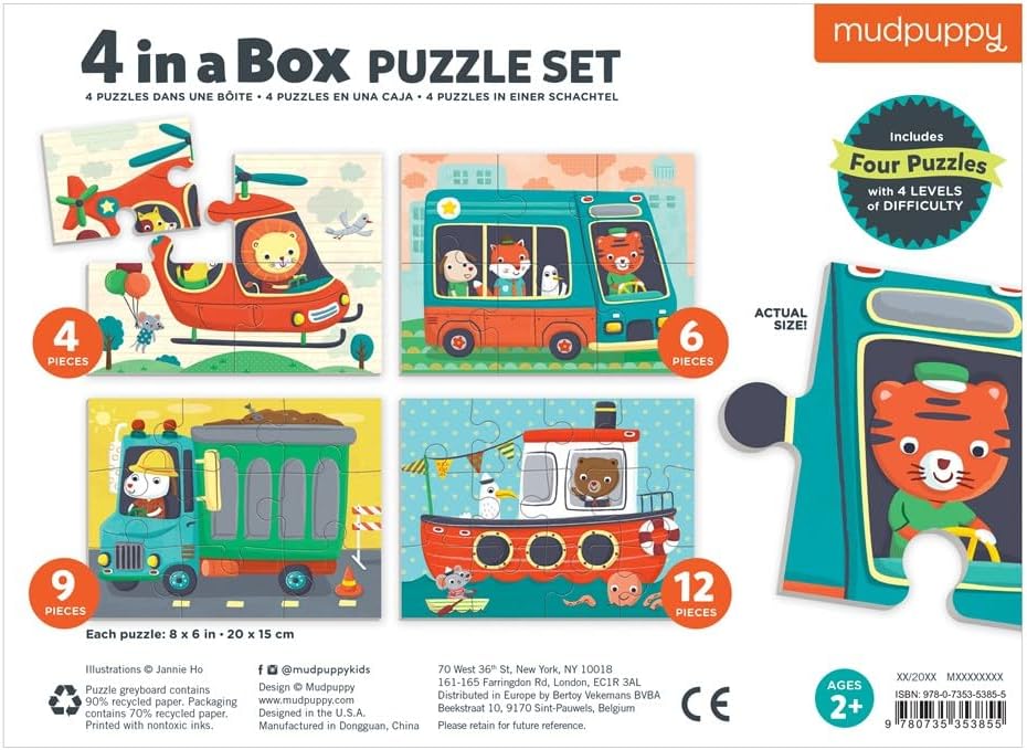 Mudpuppy 4 in a Box Puzzle Set: Transportation