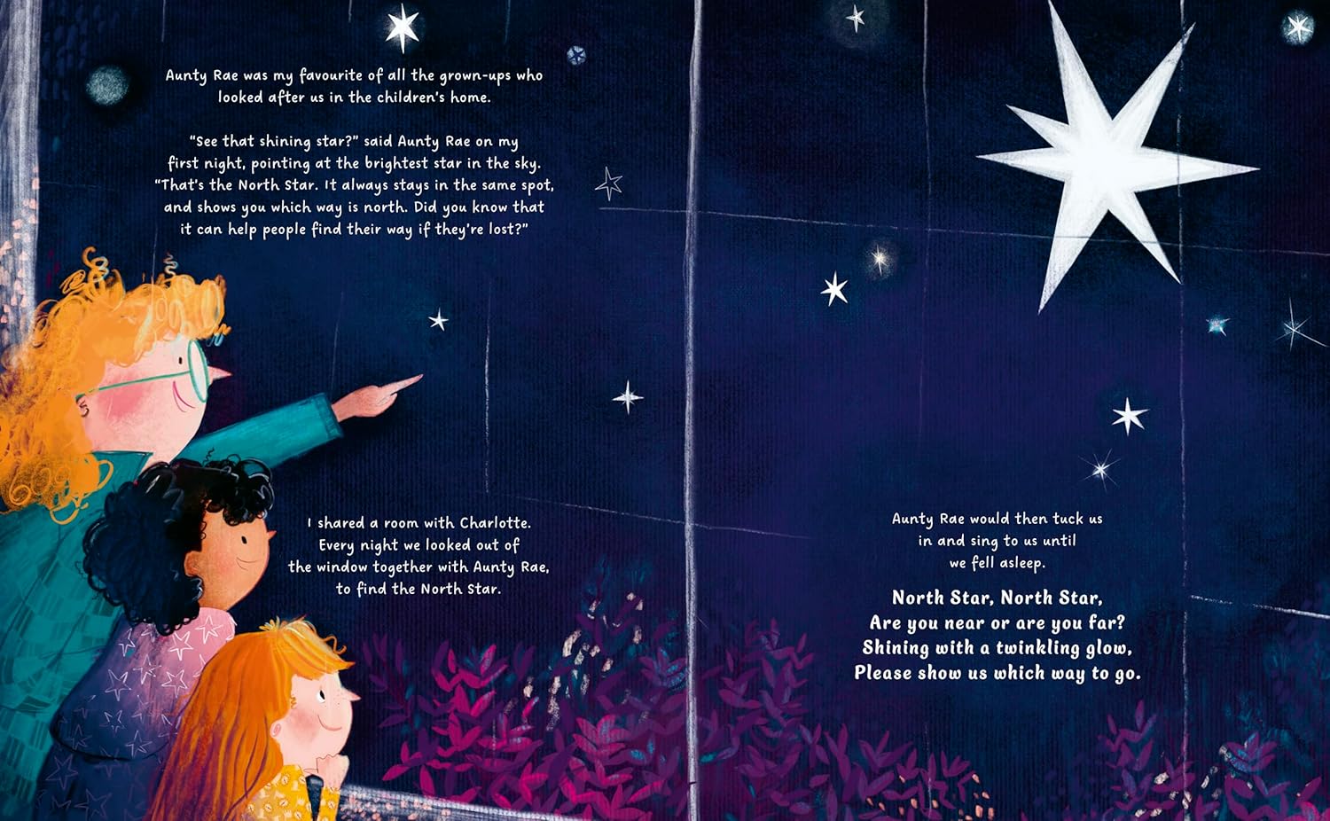 Through the uncertainty and disappointments, Aunty Rae is a constant support. Together, Fatima and Aunty Rae look out at the bright North Star and dream of Fatima's happy future with a family waiting for her somewhere. But the brightest light in Little Fatima's life is her Aunty Rae, her bright shining star.