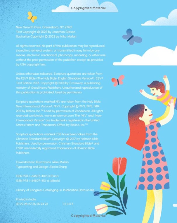 Jonathan Gibson helps toddlers and preschoolers learn key Bible verses along with their ABCs. Each letter of the alphabet has a bright, captivatingly illustrated page with a short, foundational Bible verse to be memorized and a simple sentence that helps explain the verse.