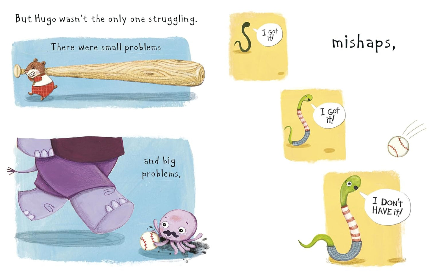 But with the help of his friends and a rousing, inclusive baseball game, Hugo learns that everyone needs something a little different to succeed and that working together is no trouble at all."