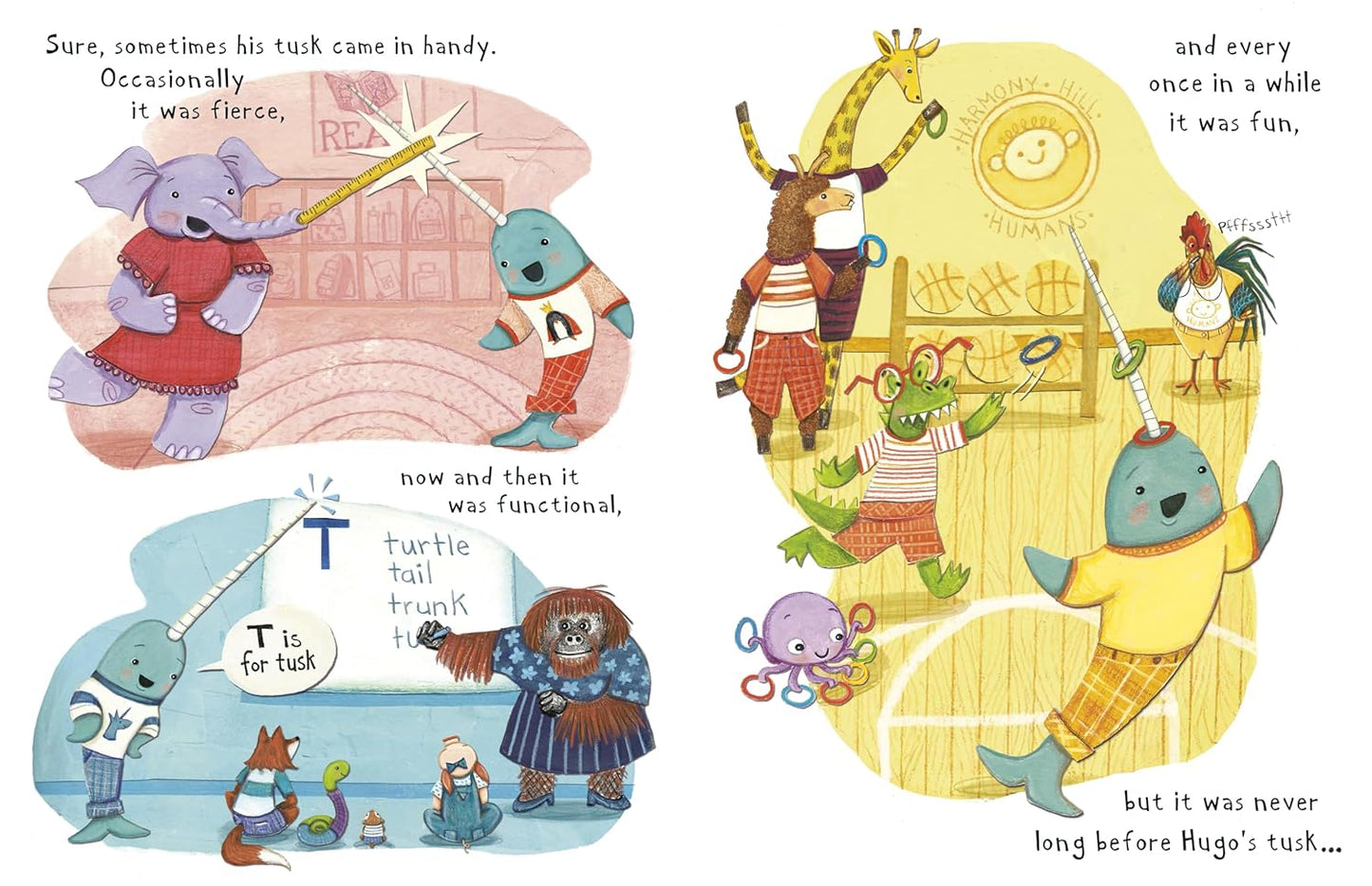 A gentle tale from the beloved creator of The Box Turtle about a narwhal whose horn keeps getting in the way during his first week of school, until his new friends help him find just the right accommodations