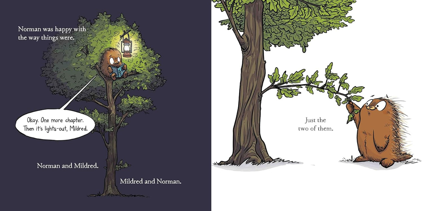"Norman is a porcupine. Mildred is a tree. Norman and Mildred are best friends. Just the two of them. And only the two of them.