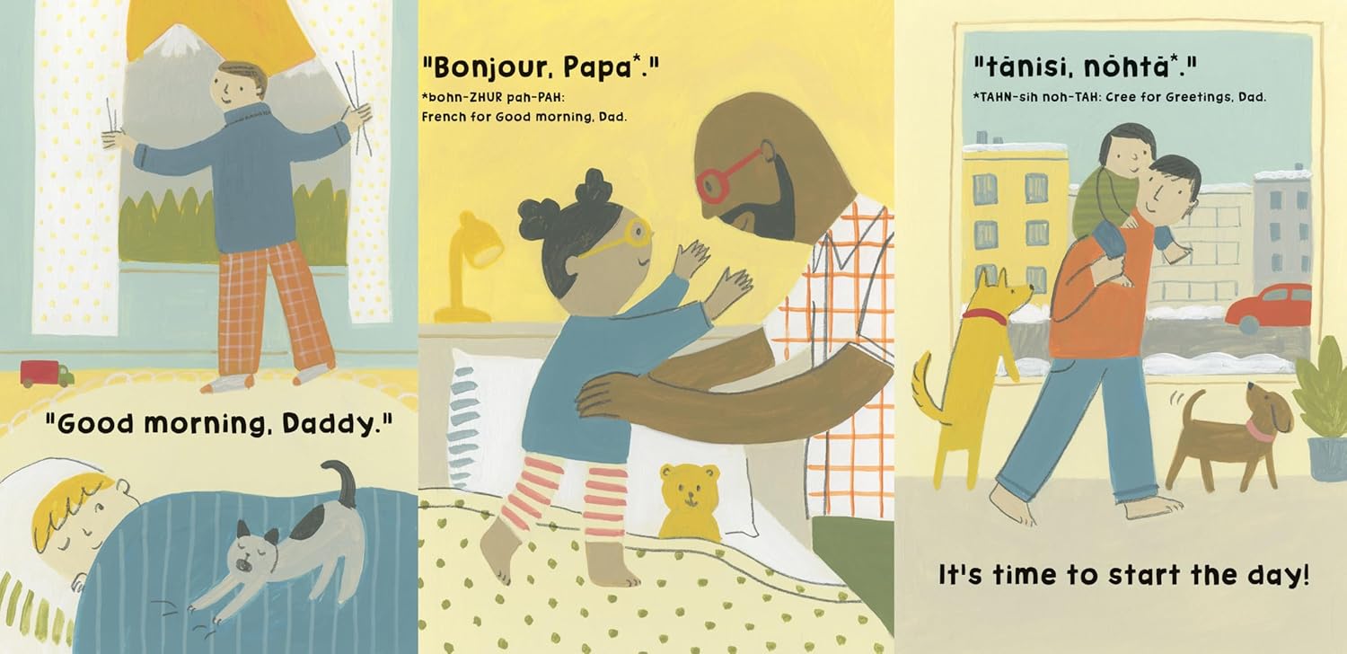 Good morning! Bonjour! Tānisi! Spend a day in Canada. Eat soft crepes with sticky maple syrup, play with atimwak in the snow and cache-cache in the park, and zip and zoom around the ice rink. Even learn words in French and Cree with pronunciation guides throughout the story.