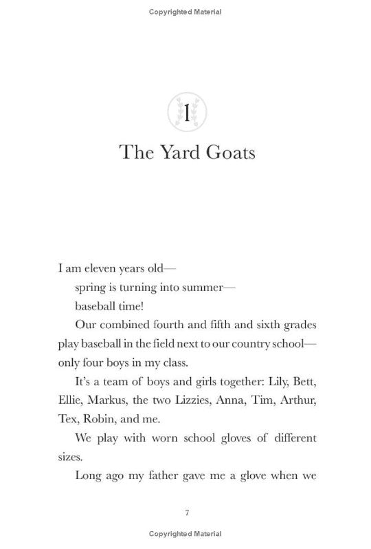 Still, this summer, Lucy wants to learn to throw the perfect knuckleball. She wakes up at the crack of dawn to practice in secret, without her friends Tex and Robin--or even the goats who watch them play. Even as she trains relentlessly, Lucy wonders if she'll ever feel brave enough to share her progress with her mom or dad. Can she prove to them, and herself, that she has what it takes?