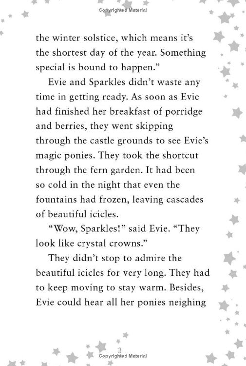 "Join Evie and Silver on a wintry adventure to see the Northern Lights at the Mid-Winter Ball. There's so much to do before the Ball--sledding, making magical snow dresses, and catching up with old friends. Can Evie and her friends make it to the Ball and rescue one of the Queen's fairies on their way?"