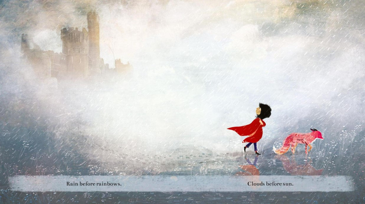 In this heartfelt story about courage, change, and moving on, a girl and her companion fox travel together away from a sorrowful past, through challenging and stormy times, toward color and light and life. Along the way they find friends to guide and support them, and when the new day dawns, it is full of promise. With gorgeous, richly realized illustrations and immense hope at its heart, Rain Before Rainbows holds out a ray of sunshine for anyone looking for light.