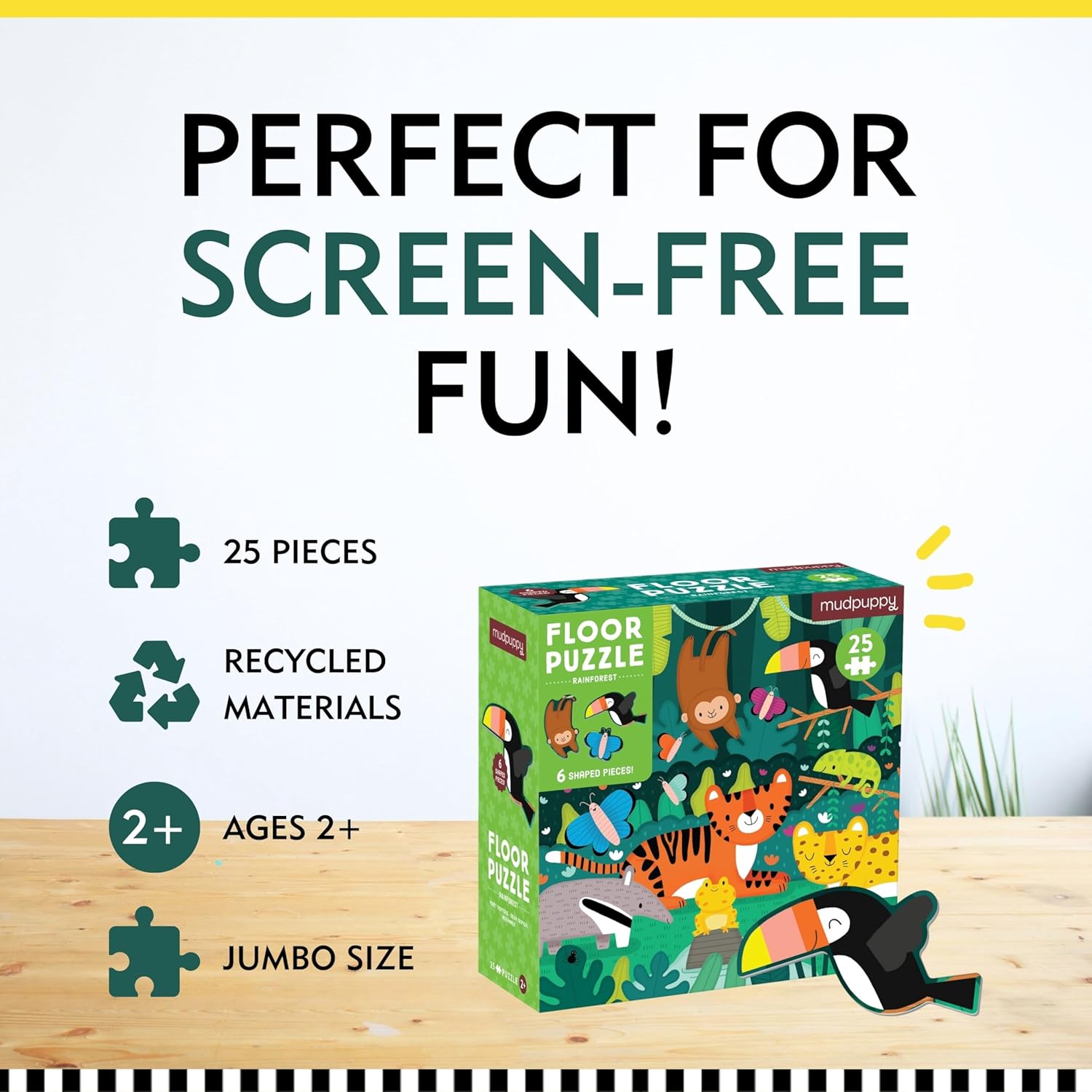 25 PIECE PUZZLE - Piece together a colorful rainforest with the Rainforest 25 Piece Floor Puzzle from Mudpuppy. Ideal for ages 2+, this jigsaw puzzle includes oversized pieces, which are perfect for small hands.