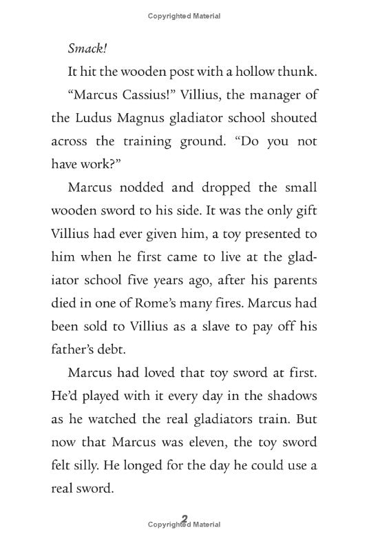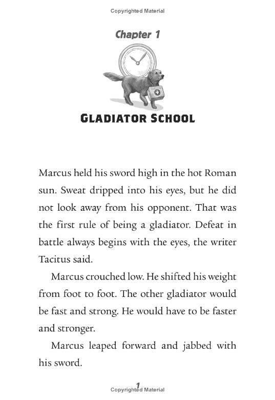 Ranger is a golden retriever who has been trained as a search-and-rescue dog. In this adventure, Ranger travels to the Colosseum in ancient Rome, where there are gladiator fights and wild animal hunts! Ranger befriends Marcus, a young boy Ranger saves from a runaway lion, and Quintus, a new volunteer gladiator who must prove himself in the arena. Can Ranger help Marcus and Quintus escape the brutal world of the Colosseum?