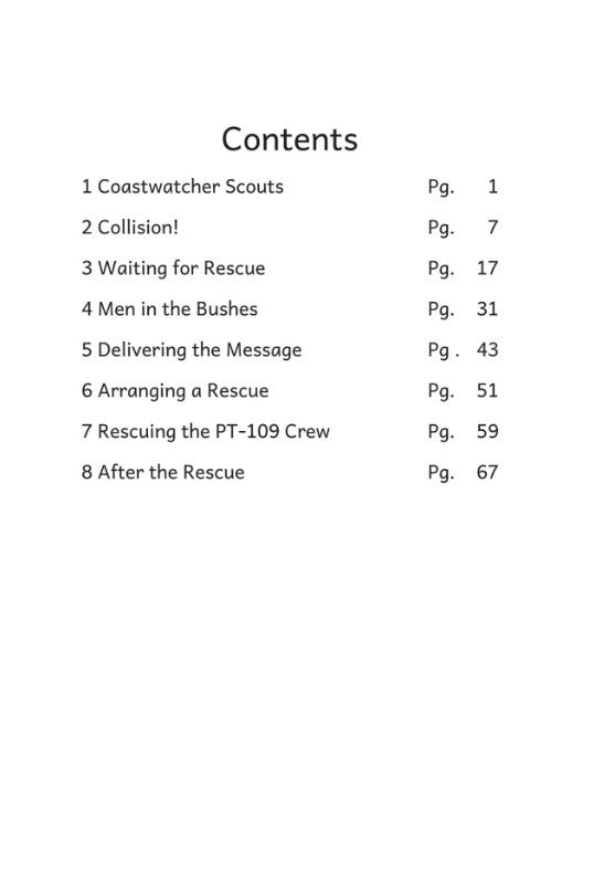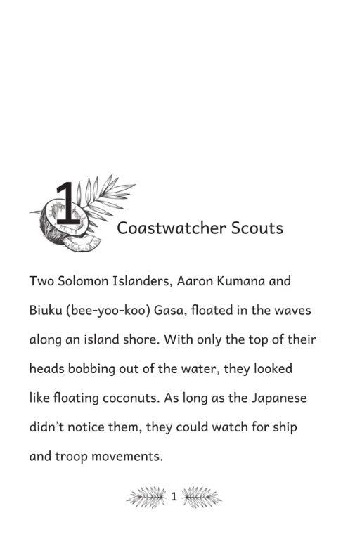 This story showcases the bravery and determination of the Solomon Islands Scouts and the grit, resilience, and courage of John F. Kennedy and his crew. The primary material for the story comes from oral histories by the Solomon Islander rescuers who were instrumental in locating JFK and the PT-109 crew, plus information from their families and acquaintances.