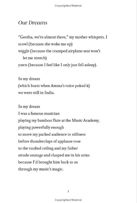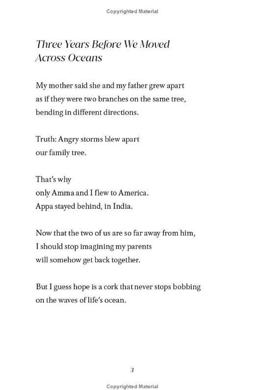 "When Geetha and her mom move from India to Rhode Island after her parents' divorce, they leave everything Geetha loves behind--her family, her friends, her dog, and all that's familiar. As if that's not hard enough, Geetha is bullied at her new school for her clothes, her food, and her English (who knew so many English words could be spelled or pronounced differently in the US--or just be altogether different!).