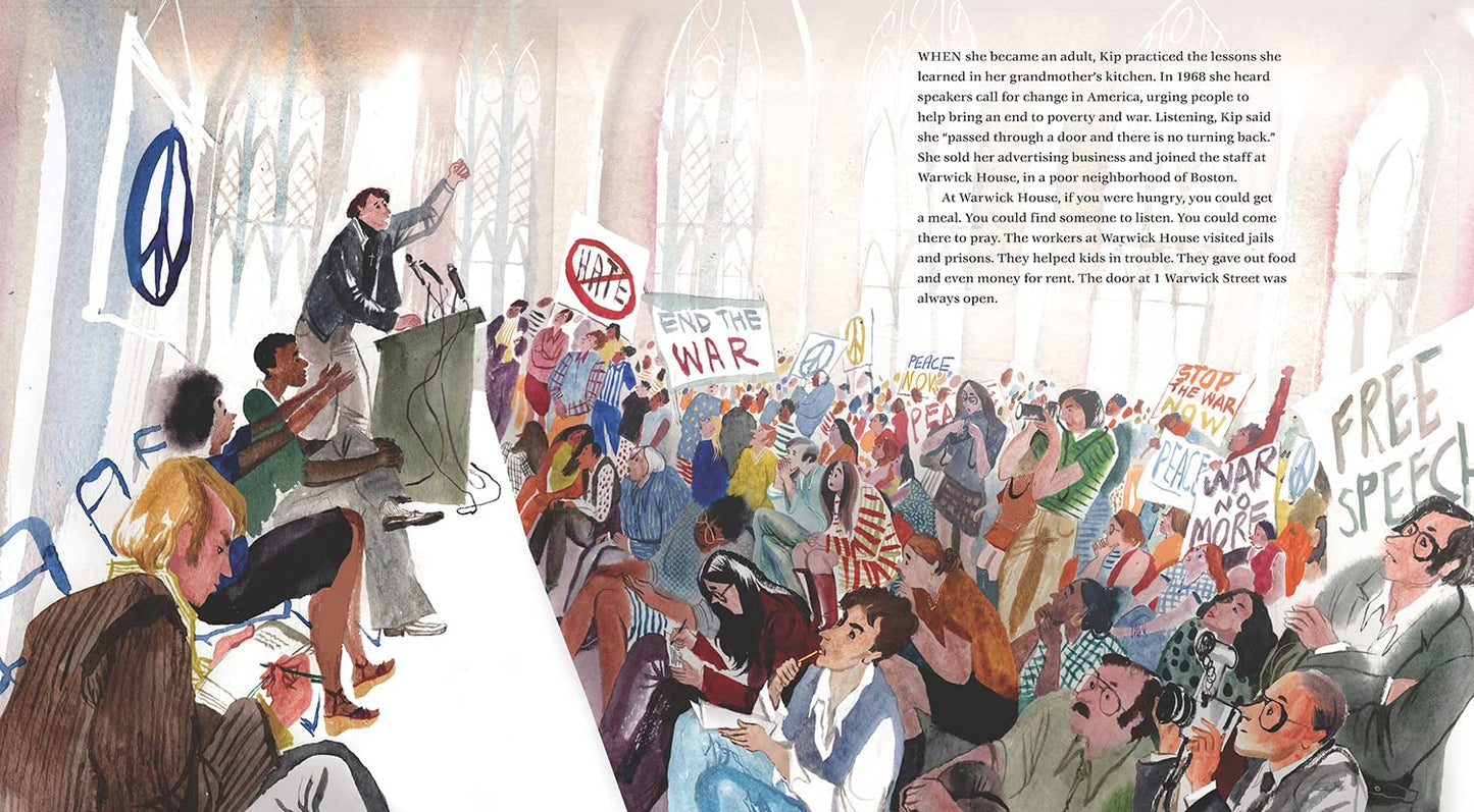 When Kip Tiernan was growing up during the Great Depression, she'd help her granny feed the men who came to their door asking for help. As Kip grew older, and as she continued to serve food to hungry people, she noticed something peculiar: huddled at the back of serving lines were women dressed as men. At the time, it was believed that there were no women experiencing homelessness. And yet Kip would see women sleeping on park benches and searching for food in trash cans. Kip decided to open the first shelter for women--a shelter with no questions asked, no required chores, just good meals and warm beds. With persistence, Kip took on the city of Boston in her quest to open Rosie's Place, our nation's first shelter for women.
