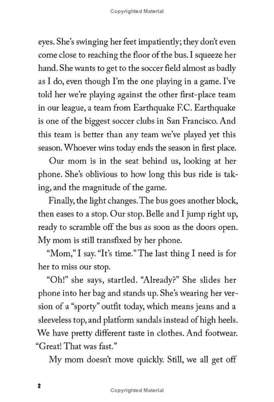 "Twelve-year-old Alex loves playing soccer, and she's good at it, too. Very good. When her skills land her a free ride to play for Select, an elite soccer club, it feels like a huge opportunity. Joining Select could be the key to a college scholarship and a bright future--one that Alex's family can't promise her.