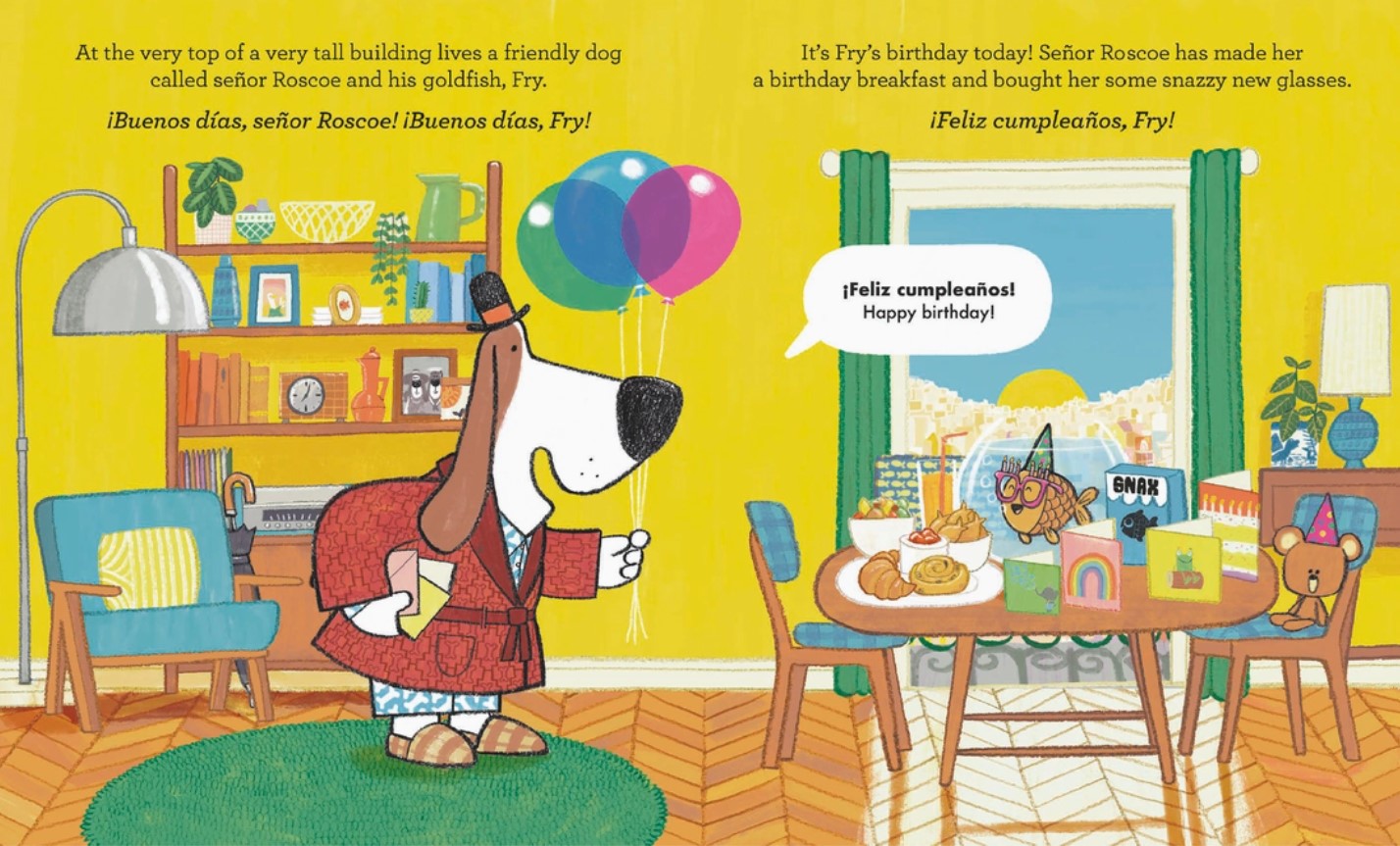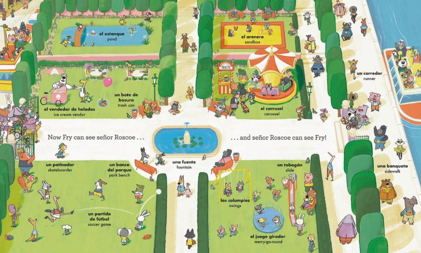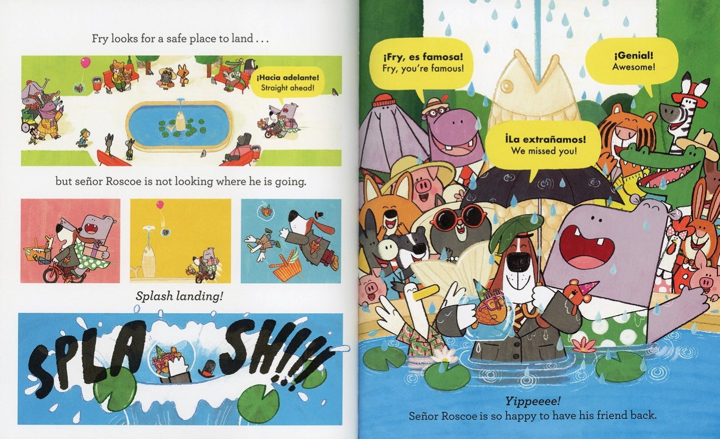 The large pages of these colorful bilingual books are packed with fun things to discuss, as little language learners accompany the endearing Roscoe on his adventures.