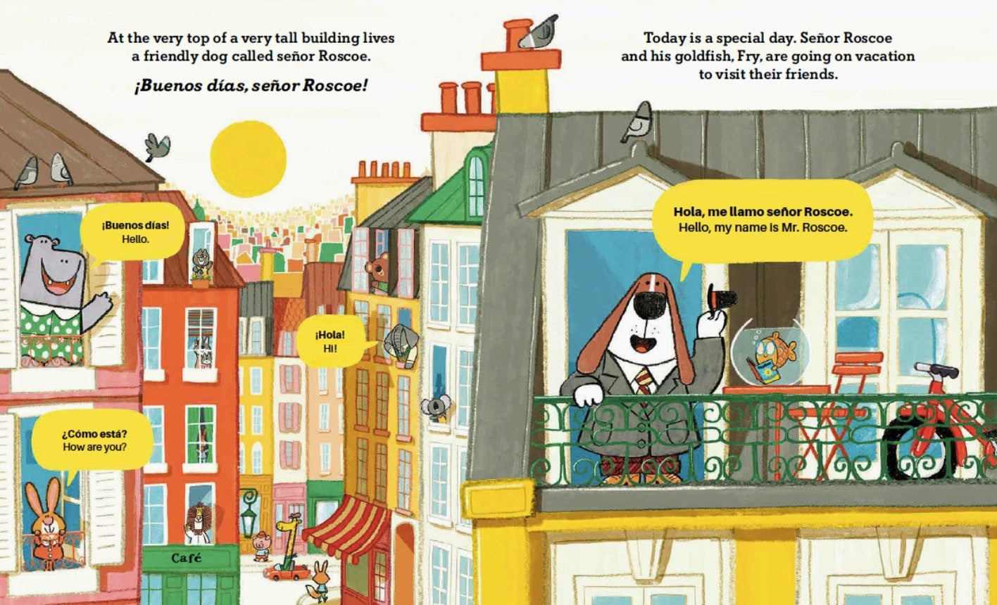 Seînor Roscoe is going on vacation! Join him and his goldfish, Fry, as they camp, ski and sail their way through the trip of a lifetime, learning lots of new Spanish words along the way.