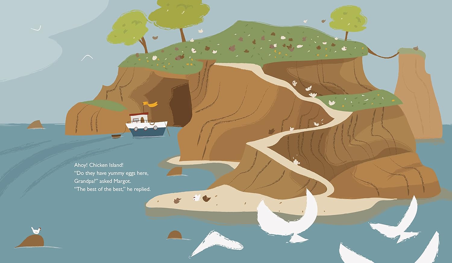 Margot and her grandpa have tummies grumbly for pancakes. Only there's a problem . . . there's no flour, milk, or eggs! But Grandpa has the perfect solution; they'll get on his boat the Beluga Blue and go to Chicken Island, Cow Island, and Flour Mill Island to get the ingredients. Set sail for pancakes!