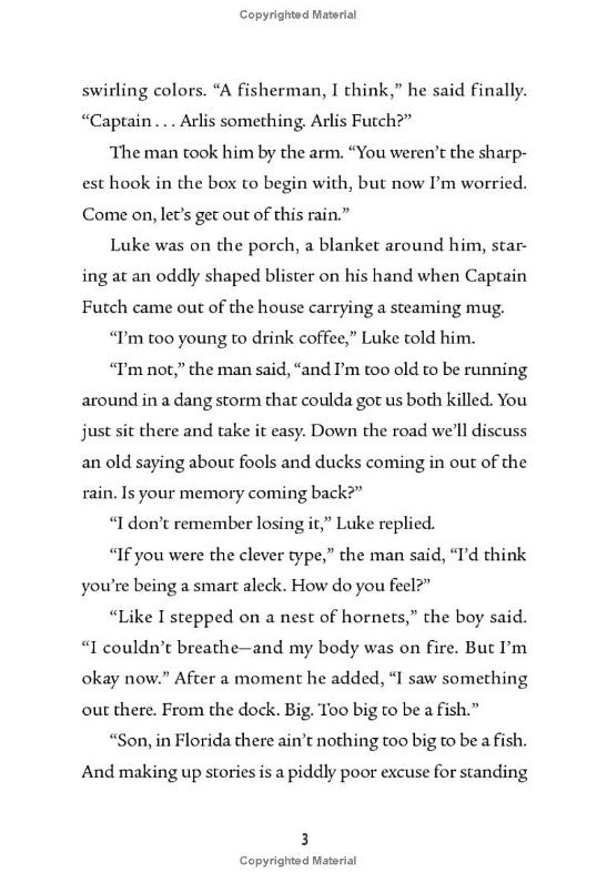 Marine biologist Doc Ford needs some assistance protecting the sharks and enlists the help of three kids--Luke, Maribel and Sabina. Luke is brand-new to Florida from the Midwest; sisters Maribel and Sabina have only recently arrived from Cuba--and all three feel like fish out of water. It's going to take some convincing for them to work as a team and to recognize in themselves the courage, wisdom and tenacity that Doc sees in them.
