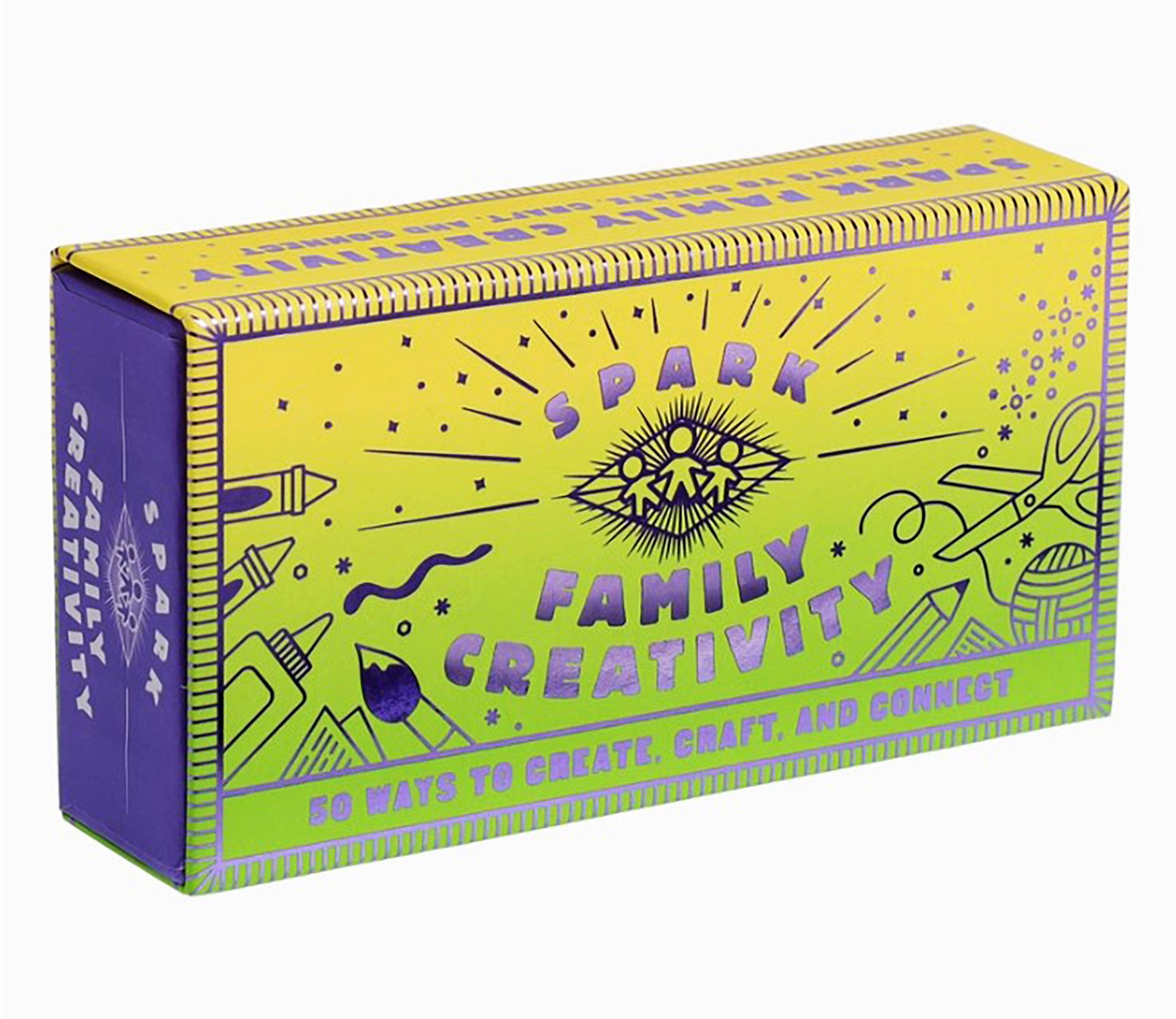 Make any day sparkle! This newest addition to the popular Spark series is full of fun prompts to get the whole family creating, imagining, and playing together. This shimmering faux matchbox is filled with 50 prompts for hands-on activities that encourage connection and creativity for all ages! Design a family crest together, reuse everyday materials to build a tiny town, or craft cards for friends and relatives.