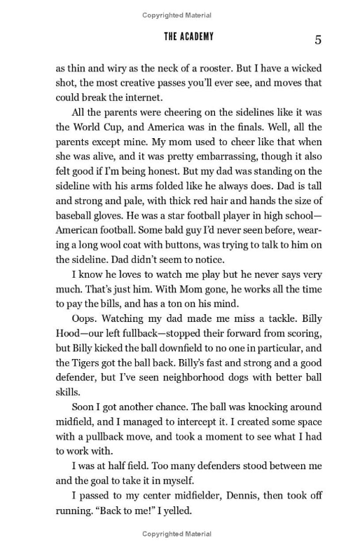 While Leo longs to make the pros one day, he has no idea how to achieve this goal--until a professional scout pays a chance visit to one of Leo's games and extends an invitation to try out for the London Dragons youth squad, known as the Academy.