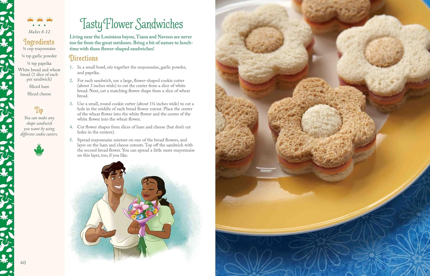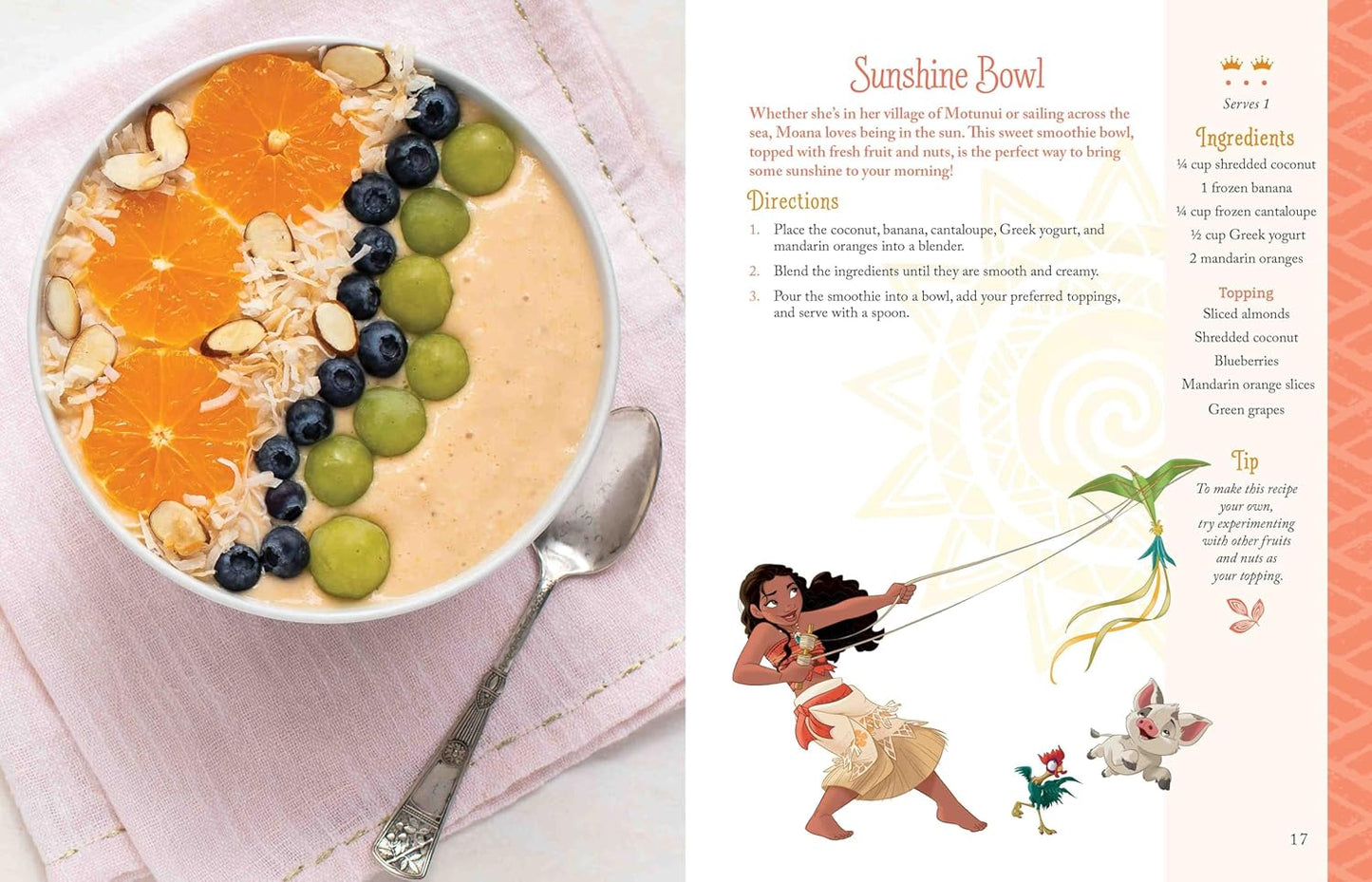 - 50 beginner-friendly recipes, including dishes like Rapunzel-inspired Frying Pan Eggs, Tiana-inspired Bayou Meatloaf, Moana-inspired Te Fiti Tropical Punch, and many more