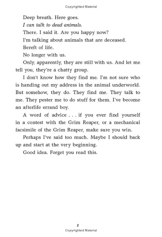Rex's uninvited ghostly guests are a chatty, messy bunch. And they need Rex to solve their mysterious deadly departures from the Middling Falls Zoo before it happens again. But how?
