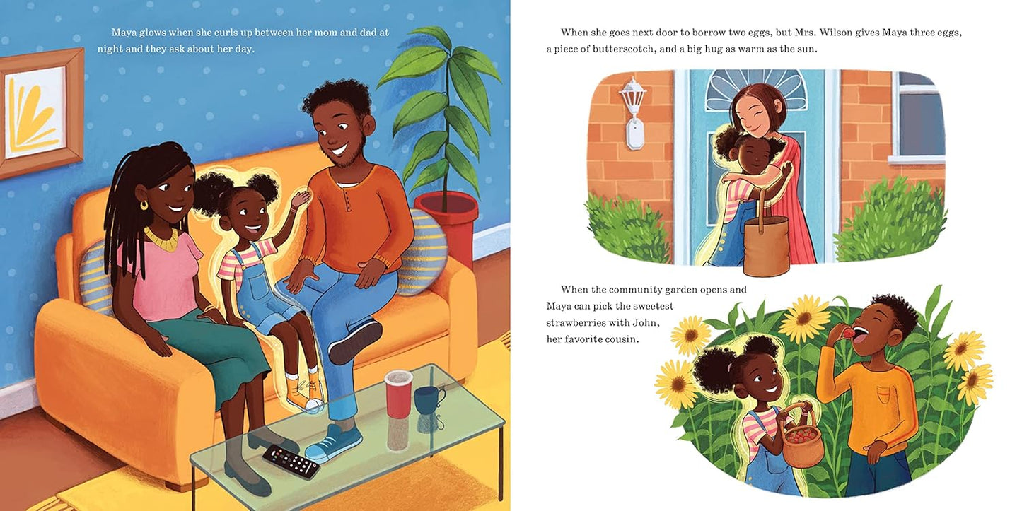 "Maya feels a warm glow when she picks strawberries in the community garden, hears music in her neighborhood, or spends time with the people she loves.
