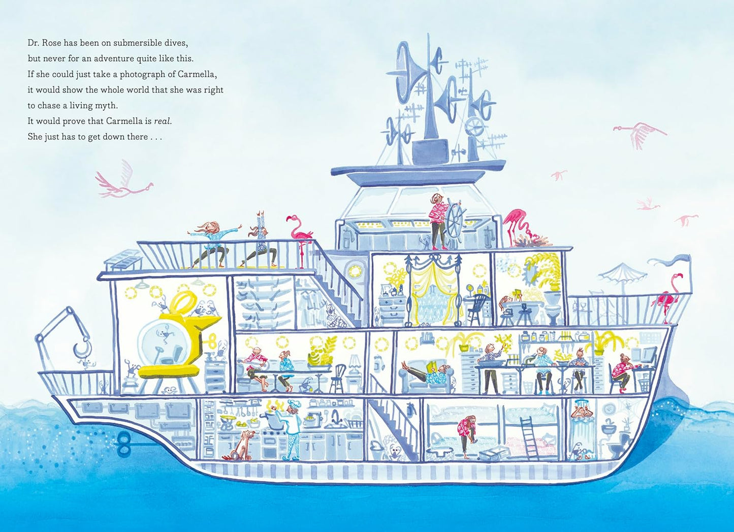 Ever since Dr. Rose was a little girl playing in rock pools, she has always loved exploring the sea and the weird and wonderful creatures living there. Now, as a marine biologist, Dr. Rose is in search of a sea creature rumored to reside within the ocean's hidden depths, a mysterious beast that many speak of but no one has ever seen: Carmella. With her team of scientists and explorers, descending in a submersible to the unfathomable dark of the deep ocean, what incredible creatures will Dr. Rose discover inhabiting a nearly pitch-black world? Rich with the magnificent sea life that can be found in deep water, Chloe Savage's strikingly illustrated tale of a strong-willed woman scientist will spark young readers to pursue their own dreams, no matter how elusive.