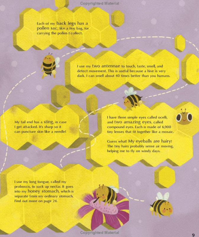 Did you know that bees love to dance? Or that they have an amazing sense of smell to help them find the best flowers? In The Secret Life of Bees, Buzzwing shares with you all the details of her life as a bee, in and out of the hive, starting with the day she was born.