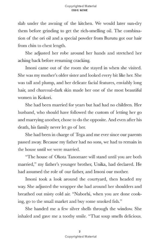 In this mesmerizing fantasy rooted in Urhobo and West African folklore, sixteen-year-old Naborhi longs for a life away from her small, traditional clan in Kokori. But as her rite of passage approaches and she is betrothed to an arrogant young man, Naborhi feels her dreams slipping away from her.