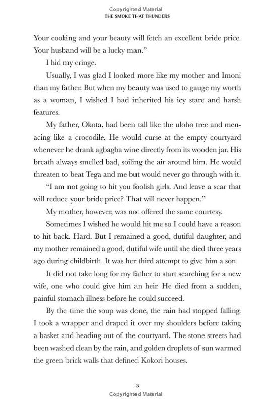 With lush, unique worldbuilding and a dynamic cast of characters, The Smoke That Thunders is a gripping story of political intrigue, fierce love, and what it means to be free.