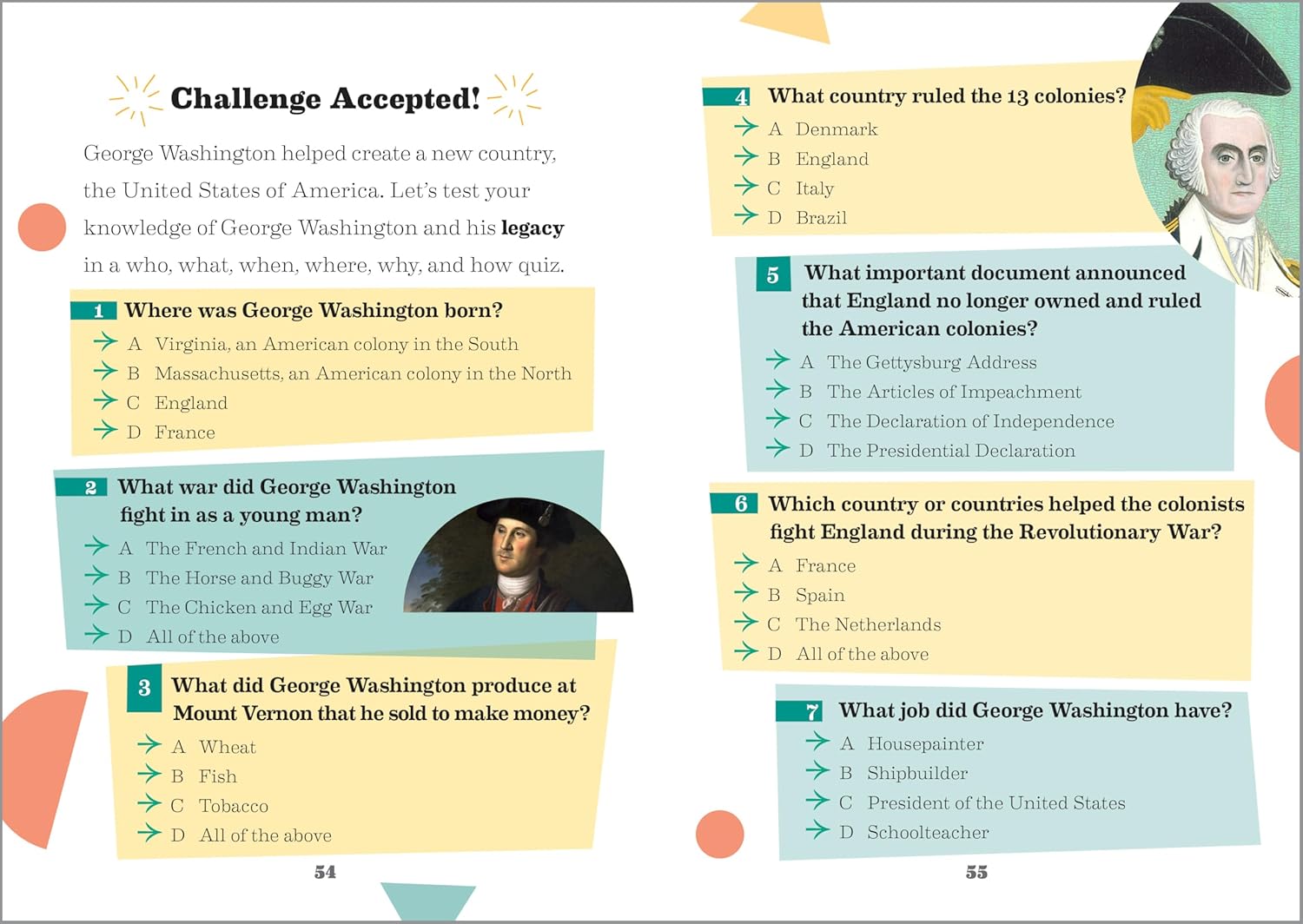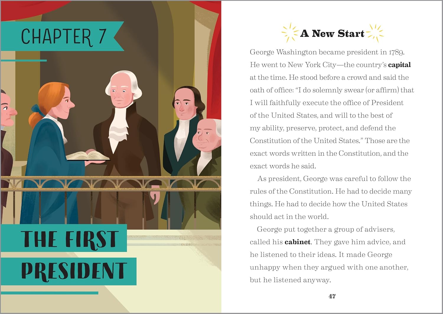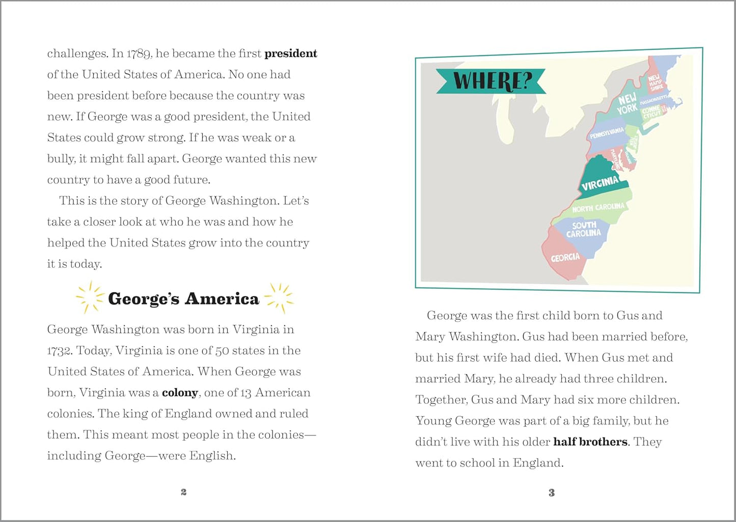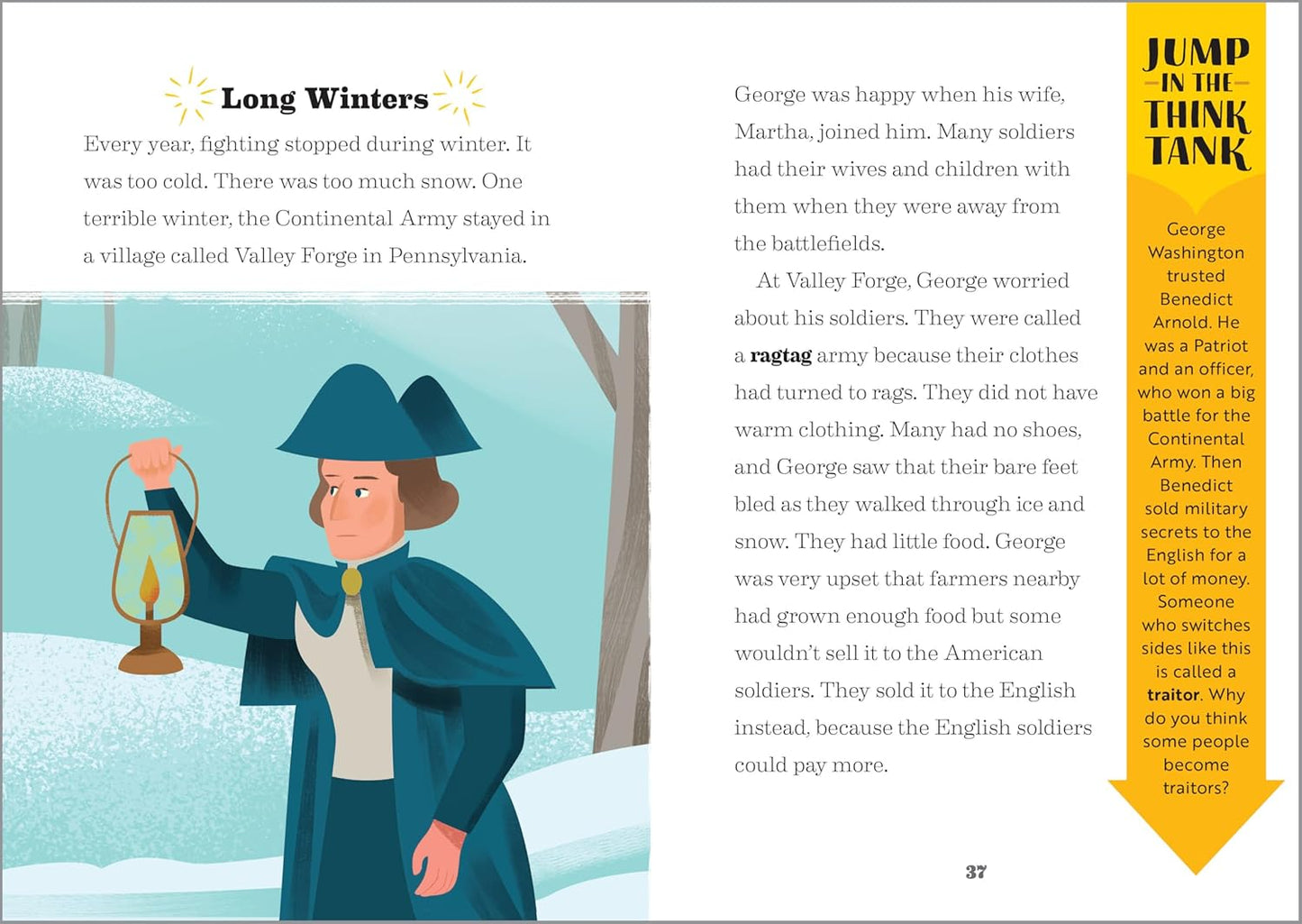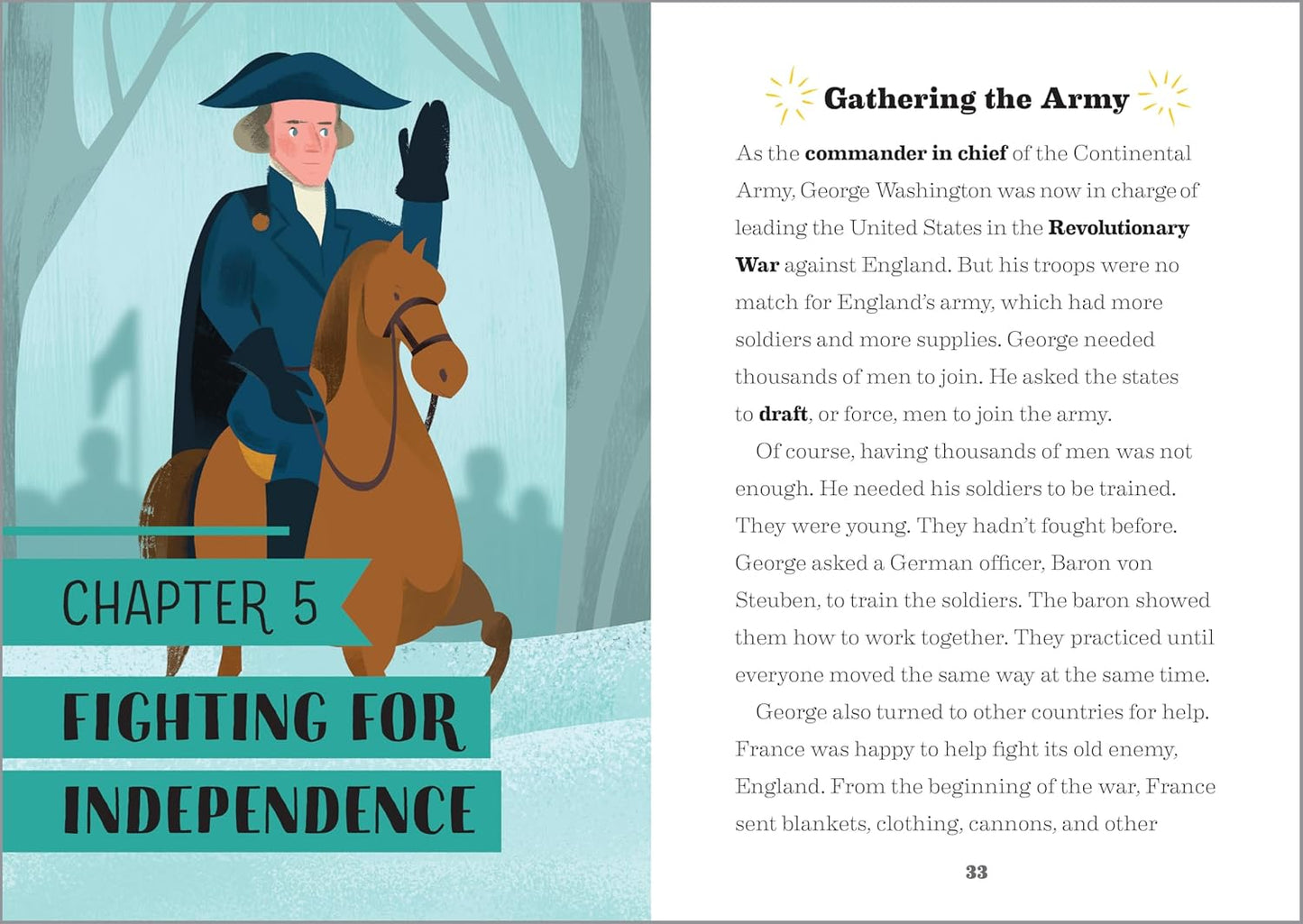 - Helpful definitions―Discover a glossary with easy-to-understand definitions for the more advanced words and ideas in this book about George Washington for kids.