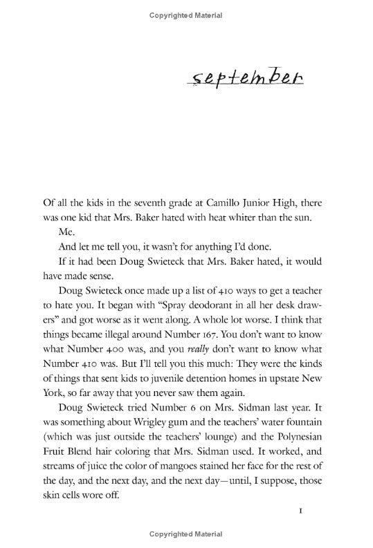 "Seventh grader Holling Hoodhood isn't happy. He is sure his new teacher, Mrs. Baker, hates his guts. Throughout the school year, Holling strives to get a handle on the Shakespeare plays Mrs. Baker assigns him to read on his own time, and to figure out the enigmatic Mrs. Baker. At home, Holling's domineering father is obsessed with his business image and disregards his family.