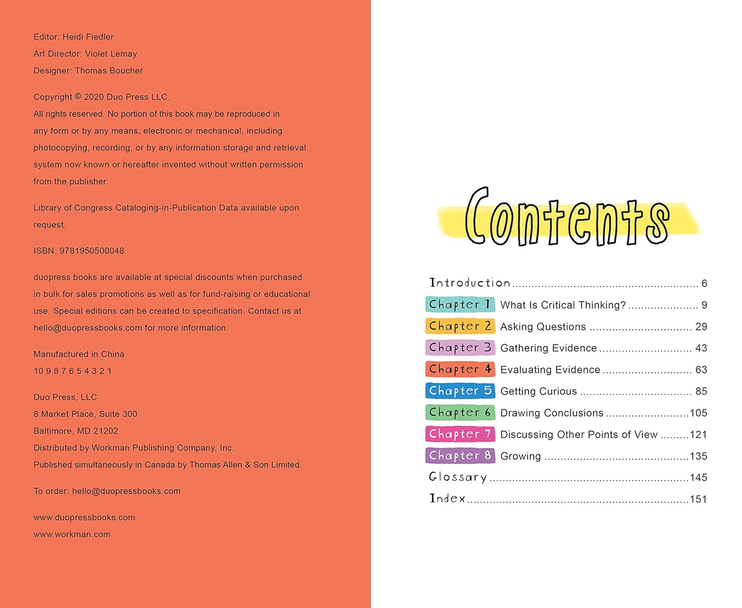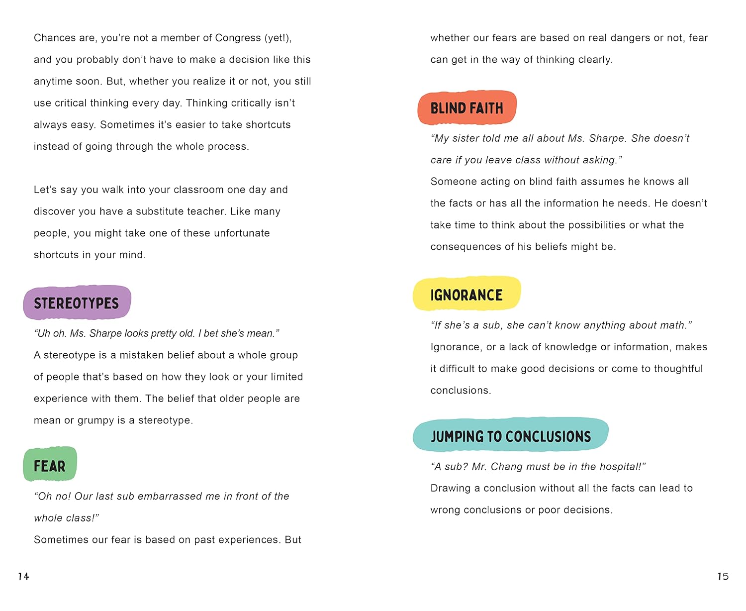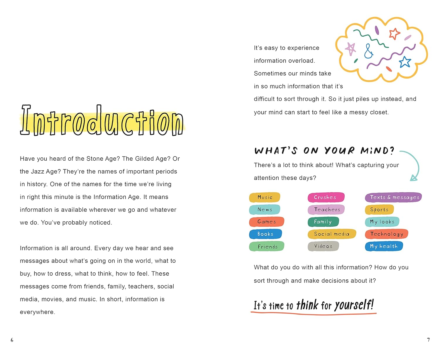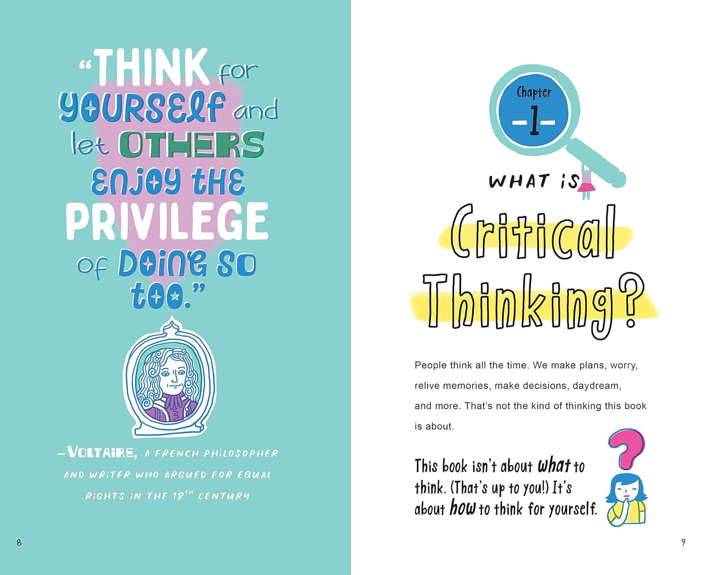 Featuring profiles of real-life inspiring young critical thinkers from around the world, checklists, quizzes, and activities, THINK FOR YOURSELF is a clever and fun illustrated guide that teaches middle schoolers that even young people can make a difference in the world just by thinking smart and understanding.