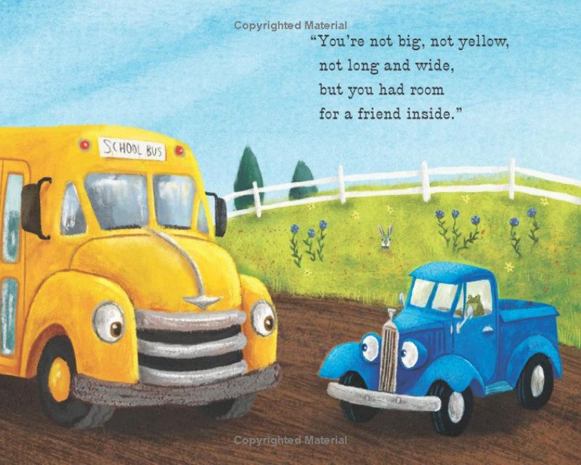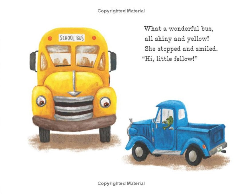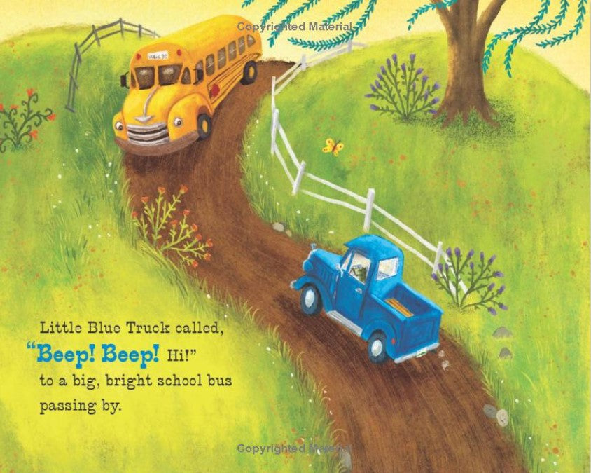 Little Blue Truck and his good friend Toad are excited to meet a bright yellow school bus on the road. They see all the little animals lined up in the school bus's many windows, and Blue wishes he could be a school bus too. What a fun job--but much too big for a little pickup like Blue. Or is it? When somebody misses the bus, it's up to Blue to get his friend to school on time. Beep! Beep! Vroom!