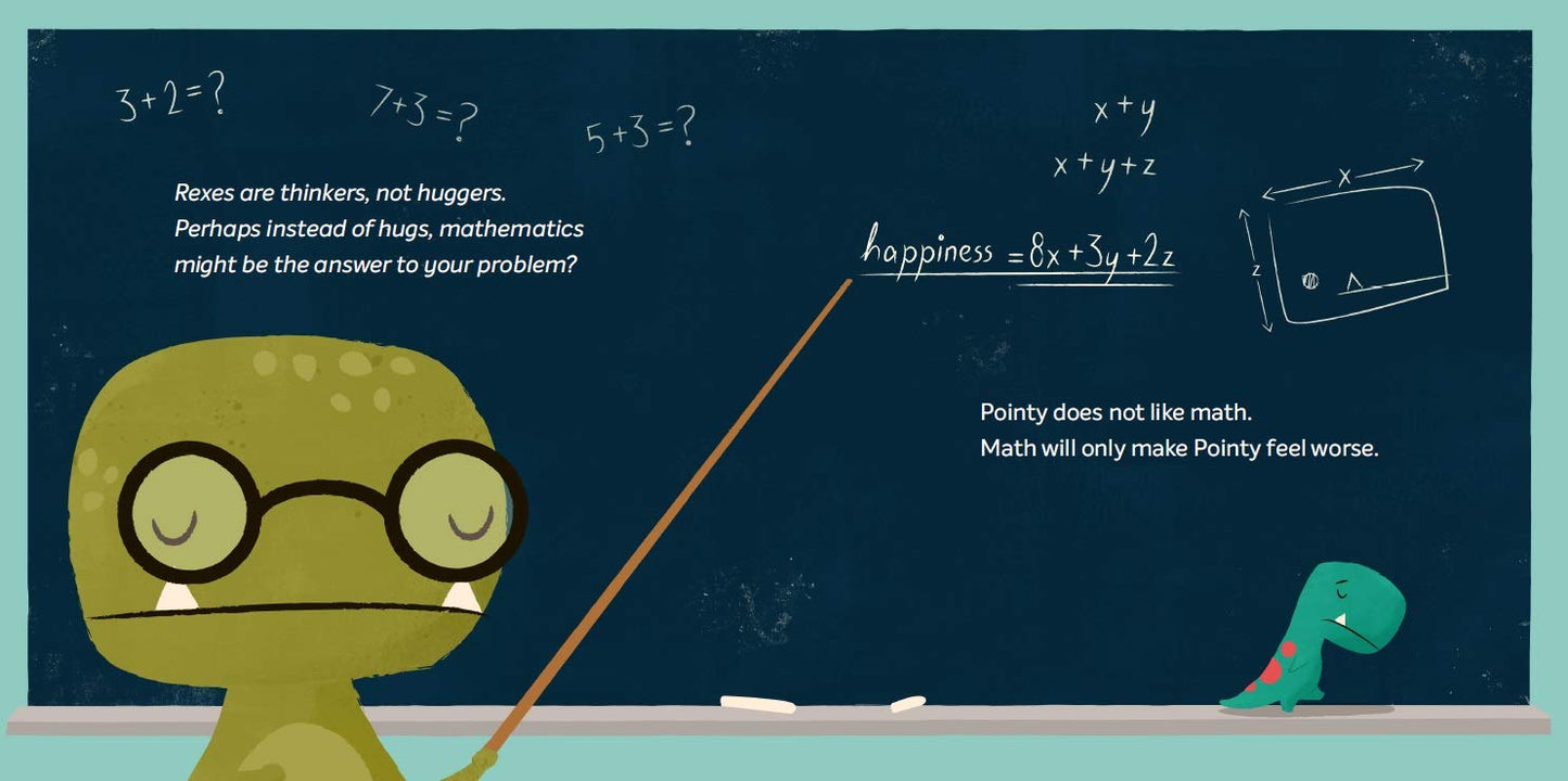 "Tiny T. Rex has a HUGE problem. His friend Pointy needs cheering up and only a hug will do. But with his short stature and teeny T. Rex arms, is a hug impossible? Not if Tiny has anything to say about it!"