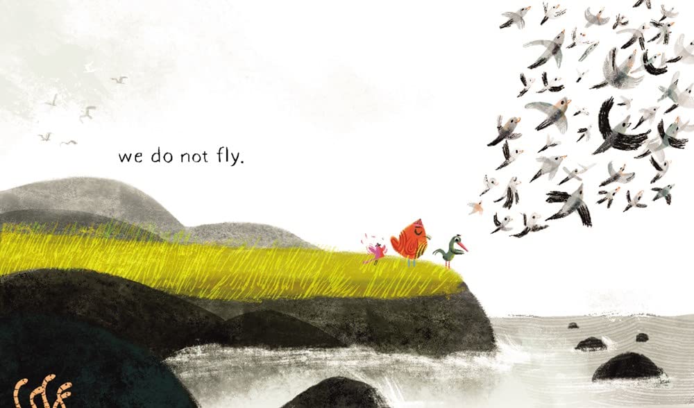 "Three flightless friends long to feel the wind beneath their wings. So, they try, and try, and try to fly. But all they do is fall, fall, fall. Flying, it turns out, is hard.