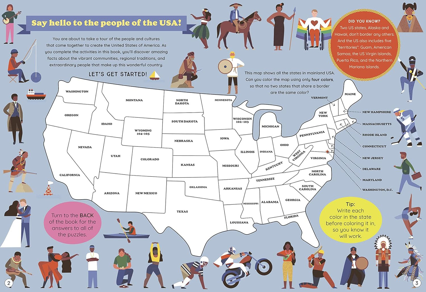 The We Are the United States Activity Book is a trip across a wonderful country through fun puzzles, games, art, and other activities designed to celebrate the incredible diversity of the USA.