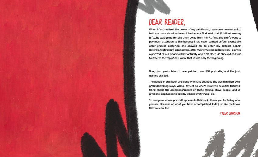 Here is a debut picture book by partially deaf prodigy Tyler Gordon, featuring his bold paintings of over 30 icons--musicians, artists, writers, civils rights leaders, sports legends, change-makers, record-setters, and more--alongside short explanations of how these people inspire him.