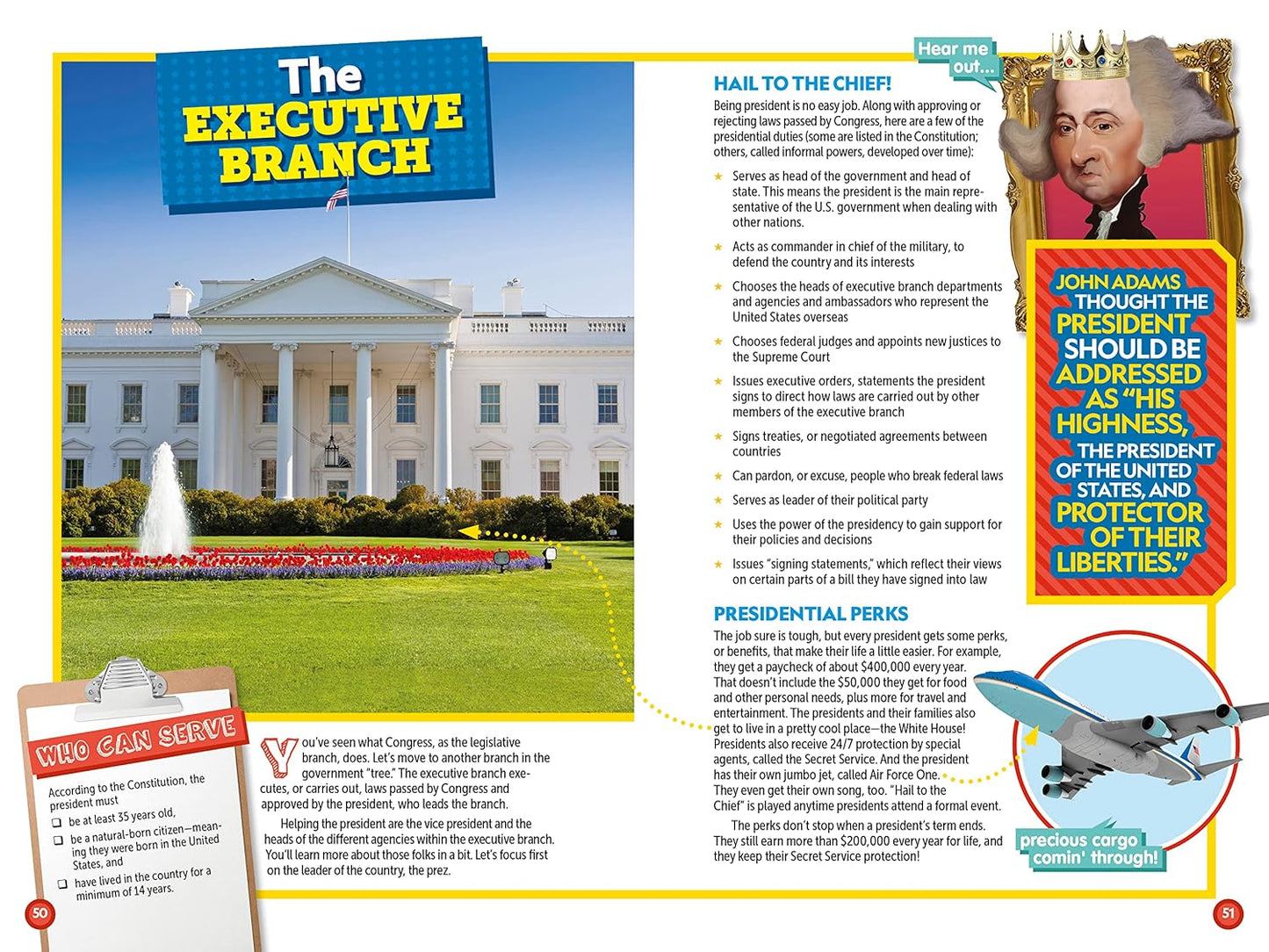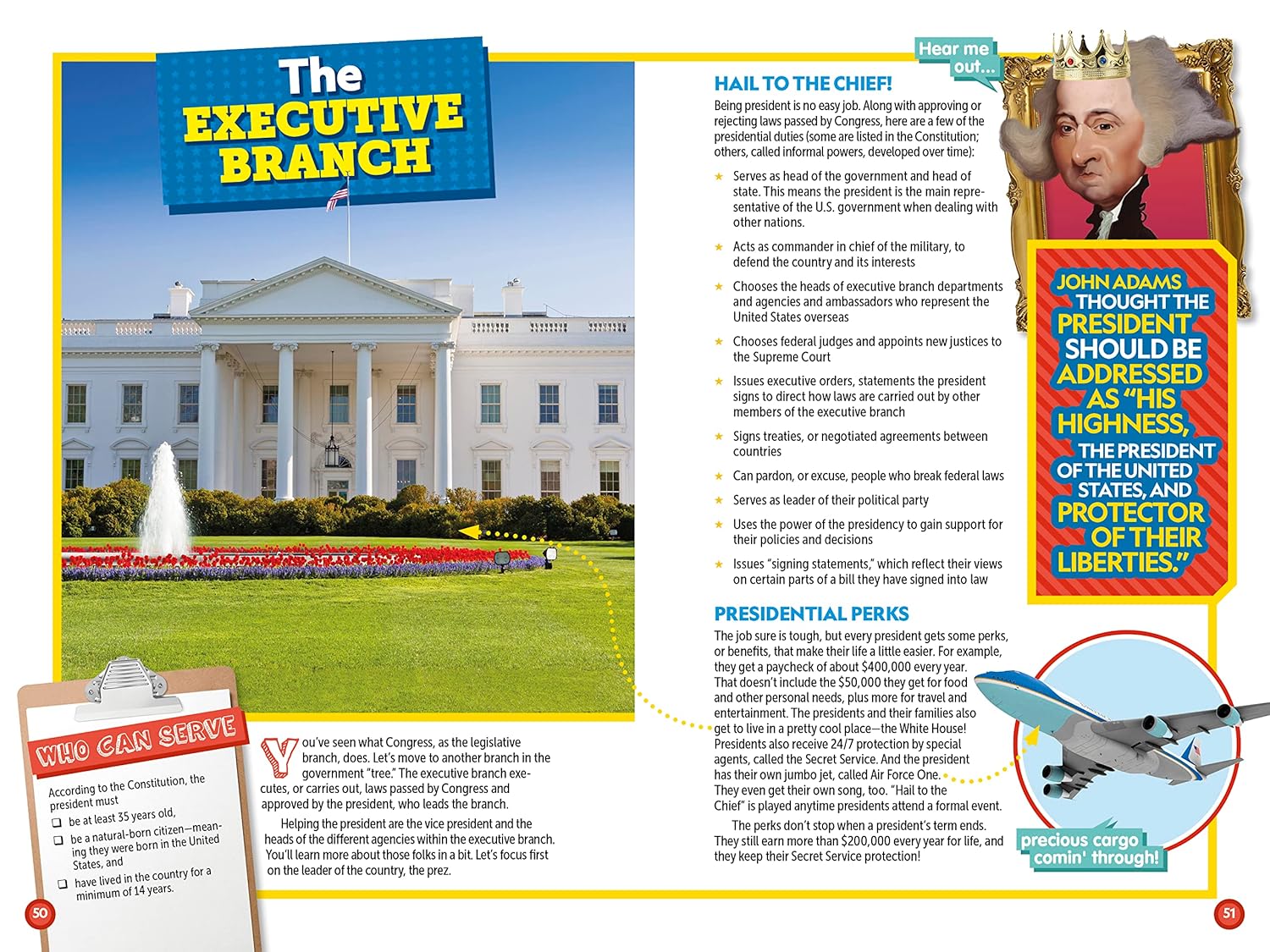 After reading this book, kids will walk away with a wealth of practical knowledge about our government, including the roles of each branch and how things get done. From the Senate to the Supreme Court and everything in between, readers will learn if a vote in Washington, D.C., really "counts," how the two-party system got started, how many representatives each state has and why, and more. They'll also be wowed by a ton of weird but true information, like funny laws in some states--in one, it's illegal to kill Bigfoot!--how members of Congress ride their own mini-subways under the Capitol, and the surprising secrets of the dollar bill!