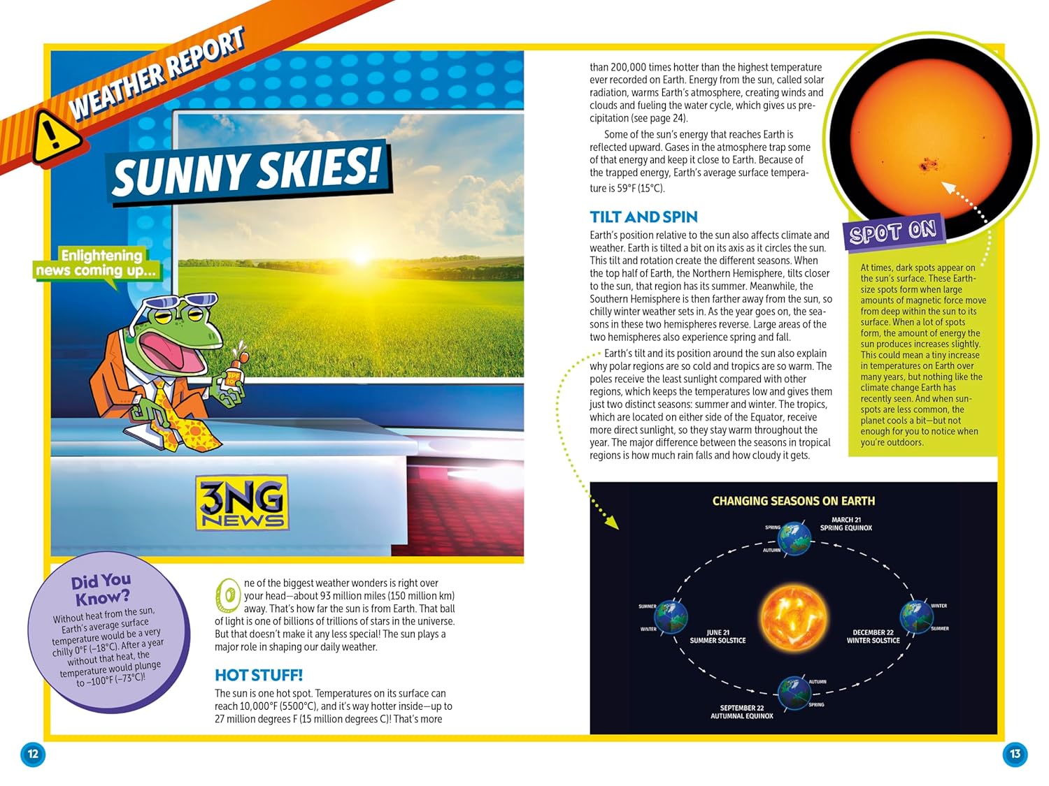 This latest installment in the hit Weird But True! Know-It-All series uncovers the mysteries of our planet's weather and how it impacts our daily life, from simple things like what to wear to how to avoid deadly disasters. Ride along with intrepid storm chasers, see why lightning forms over volcanoes, pick up brr-illiant facts about Earth's coldest places, and marvel over incredible survival stories, including one about a man who was carried more than 1,300 feet through the air by a terrifying tornado--and lived to tell the tale. Plus, find out what high-tech gadgets and cutting-edge techniques scientists are using today to help predict the weather better in the future--and potentially save lives.