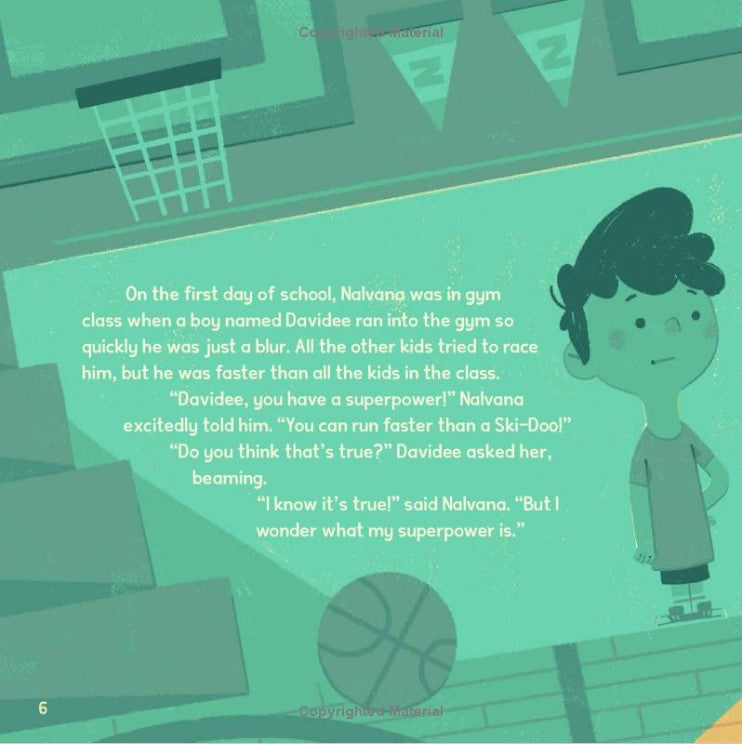 She has friends with super speed (who always beat her in races), friends with super strength (who can dangle from the monkey bars for hours), and friends who are better than her at a million other things. Nalvana thinks she must be the only kid in town without a superpower. But then her mom shows Nalvana that she is unique and special, and that her superpower was right in front of her all along.