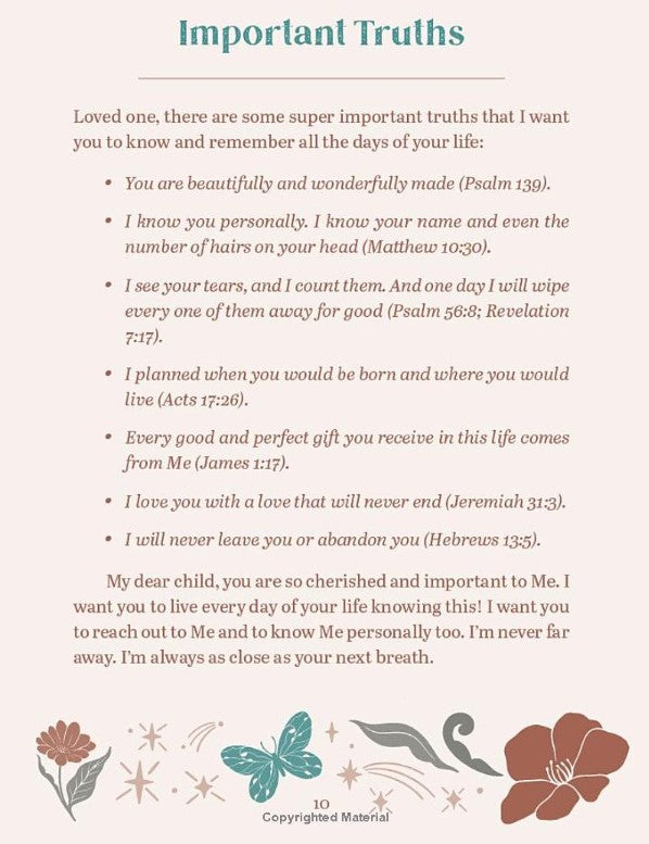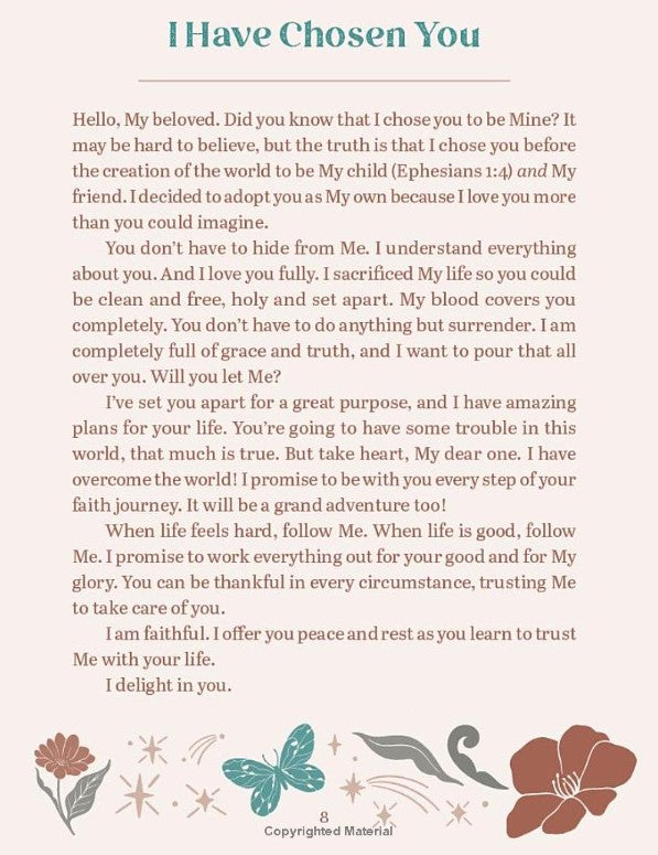 This delightfully designed devotional--just for your young heart--will inspire and encourage you in your daily faith walk. Dozens of comforting readings offer just the wisdom you need to face the day, along with lovely little reminders that Jesus has a very special message just for you. . . You'll learn that Jesus speaks every day and in every situation--whether you're experiencing hurt, loneliness, anger, sadness, or joy. Each devotional, rooted in scripture and written from Christ's heavenly perspective, will leave you feeling perfectly loved and blessed.