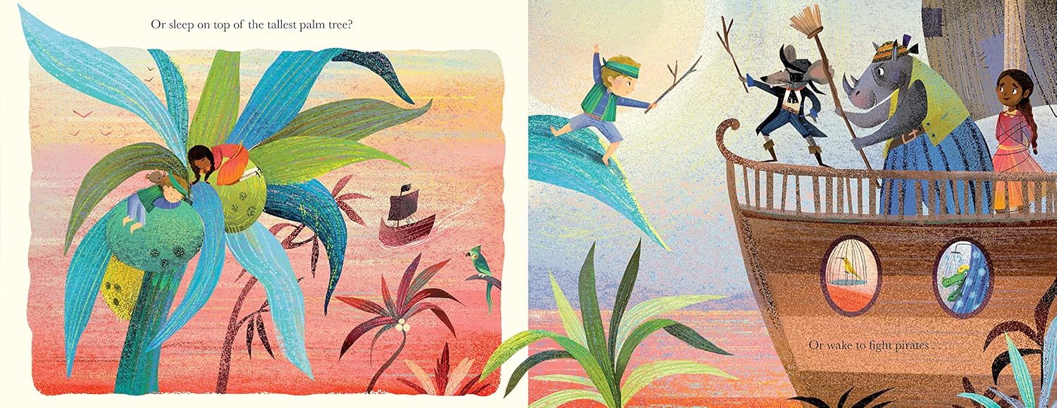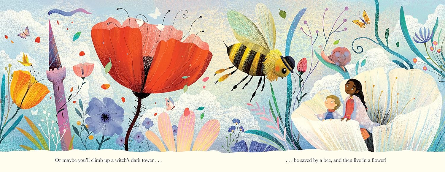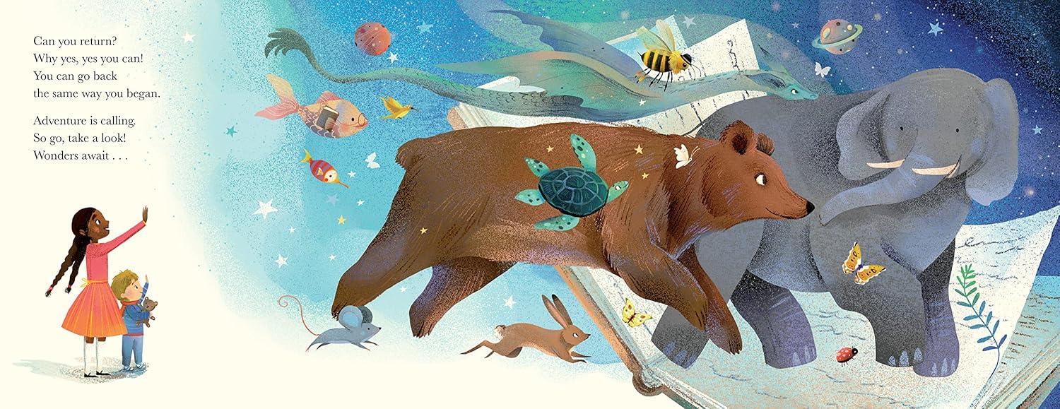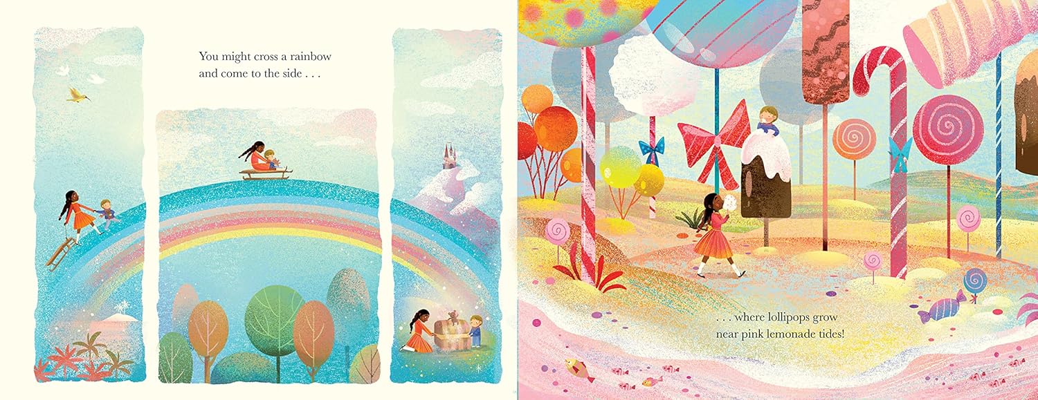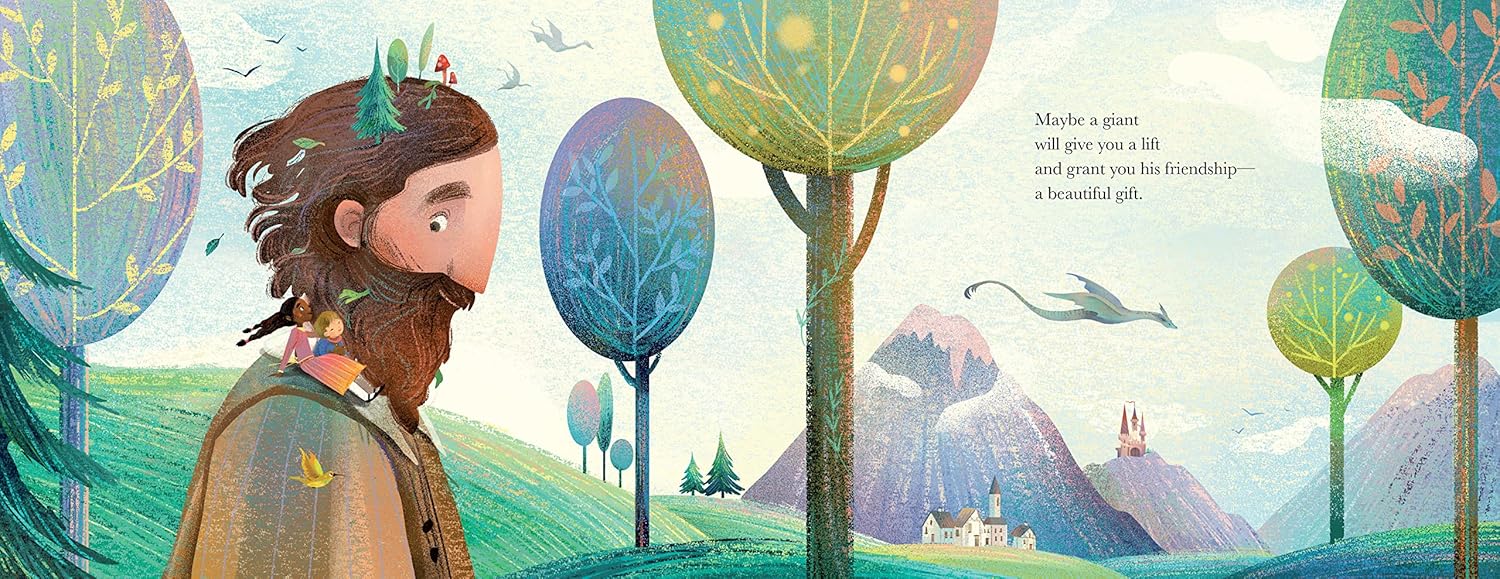 When You Open a Book is a stunning ode to the world's grandest adventure of all: reading a book. Gorgeous artwork by Italian illustrator Sara Ugolotti depicts dragons, forests, pirates, merfolk, lollipop trees, lemonade tides, and more as a child journeys through page upon page of the written word.