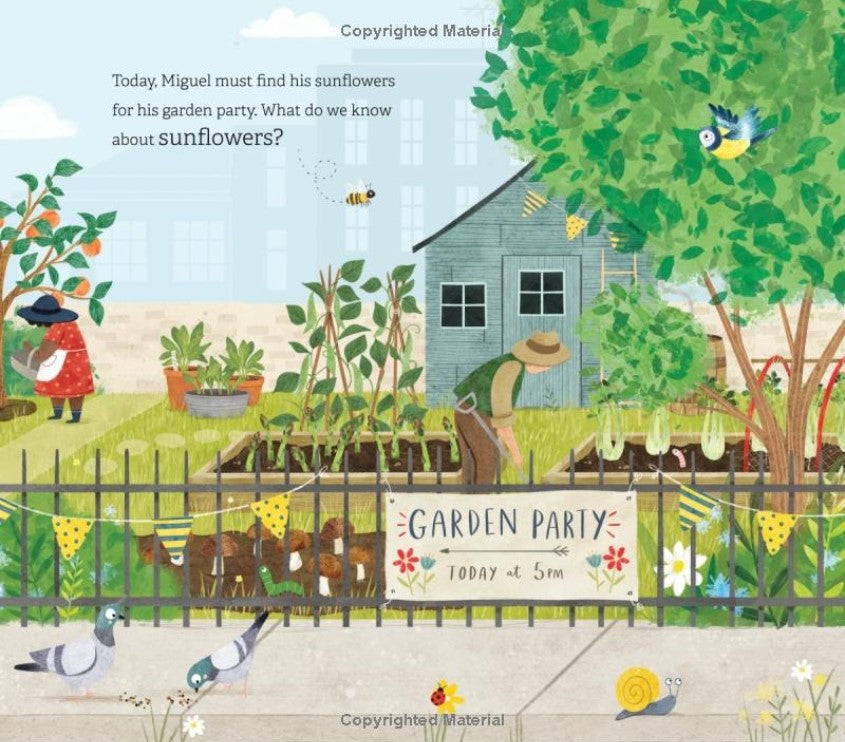 Miguel searches for sunflowers in his community garden in this vibrant exploration of growing food and healthy eating, from the Where in the Garden? series.