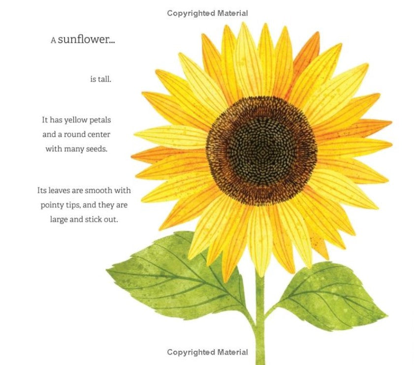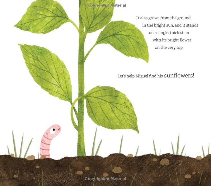 "Miguel is throwing a party at his community garden for all of his friends, and he needs help searching for sunflowers to complete the celebration. What do we know about sunflowers? They're tall with petals and leaves--and, hold on, is that a sunflower? No, that's an artichoke. Where, oh, where could those sunflowers be? Can you help Miguel find them in time for his party?