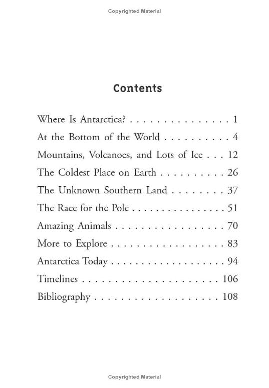 Antarctica, the earth's southernmost continent, was virtually untouched by humans until the nineteenth century. Many famous explorers journeyed (and often died) there in the hope of discovering a land that always seemed out of reach. This book introduces readers to this desert--yes, desert!--continent that holds about 90 percent of the world's ice; showcases some of the 200 species that call Antarctica home, including the emperor penguin; and discusses environmental dangers to the continent, underscoring how what happens to Antarctica affects the entire world.