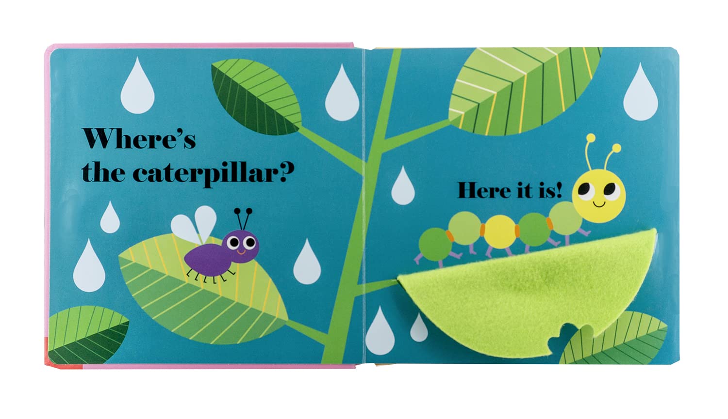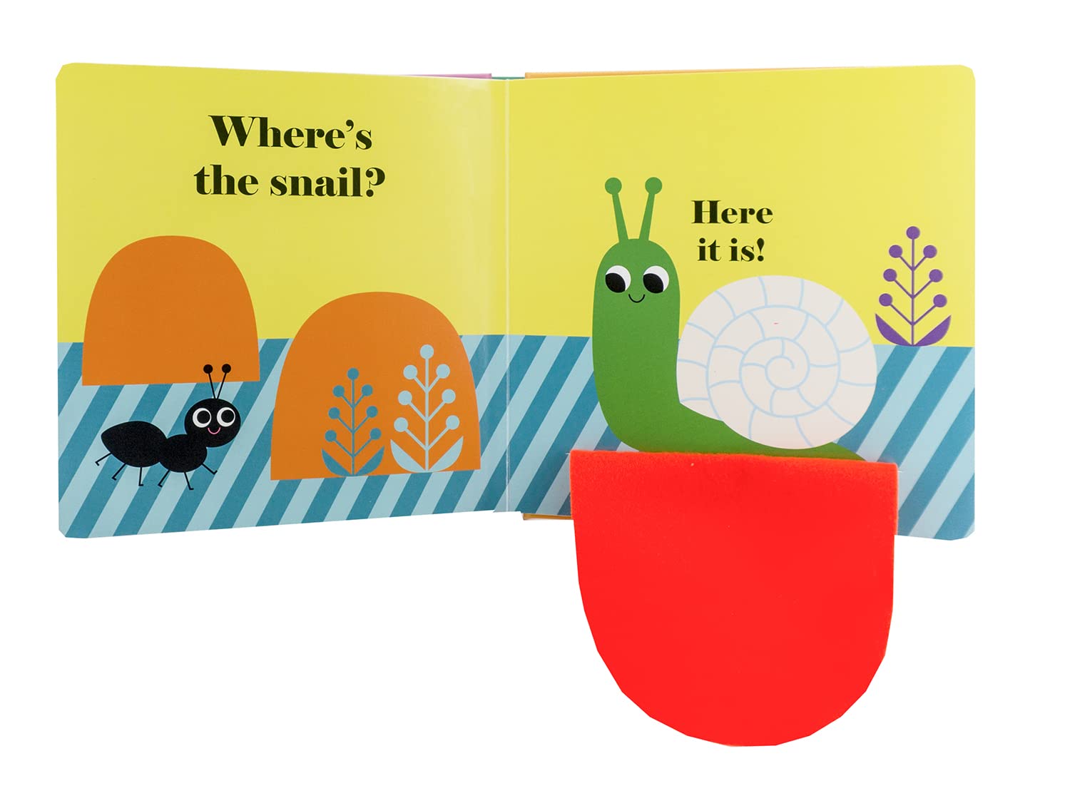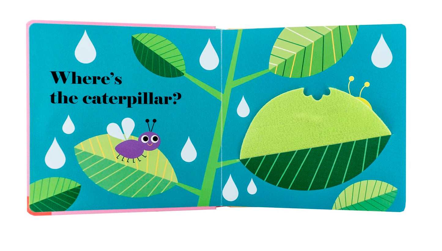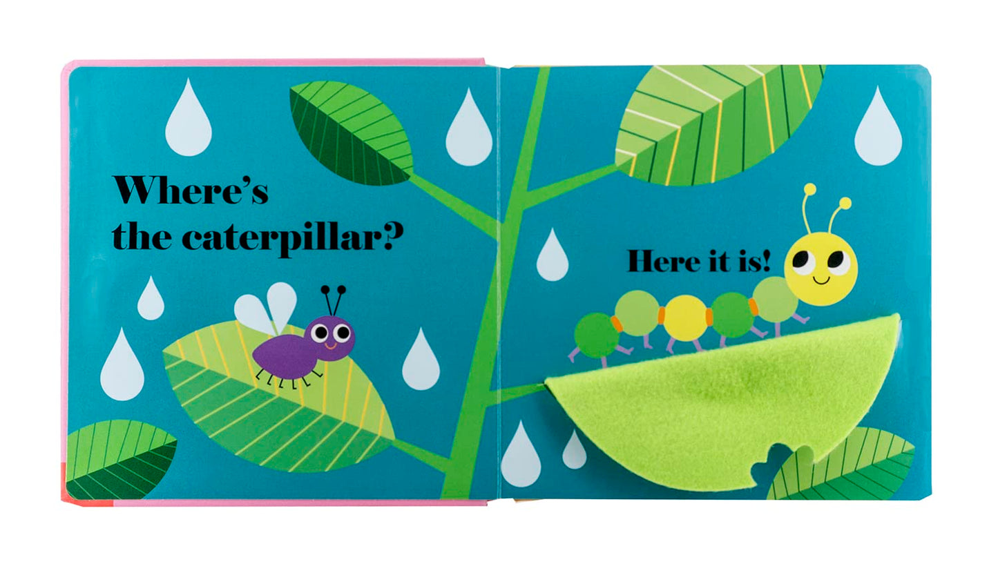 Five beautifully illustrated spreads show a series of friendly bugs hiding behind bright felt flaps. And there's a mirror on the final page! A perfect book to share with very little ones.